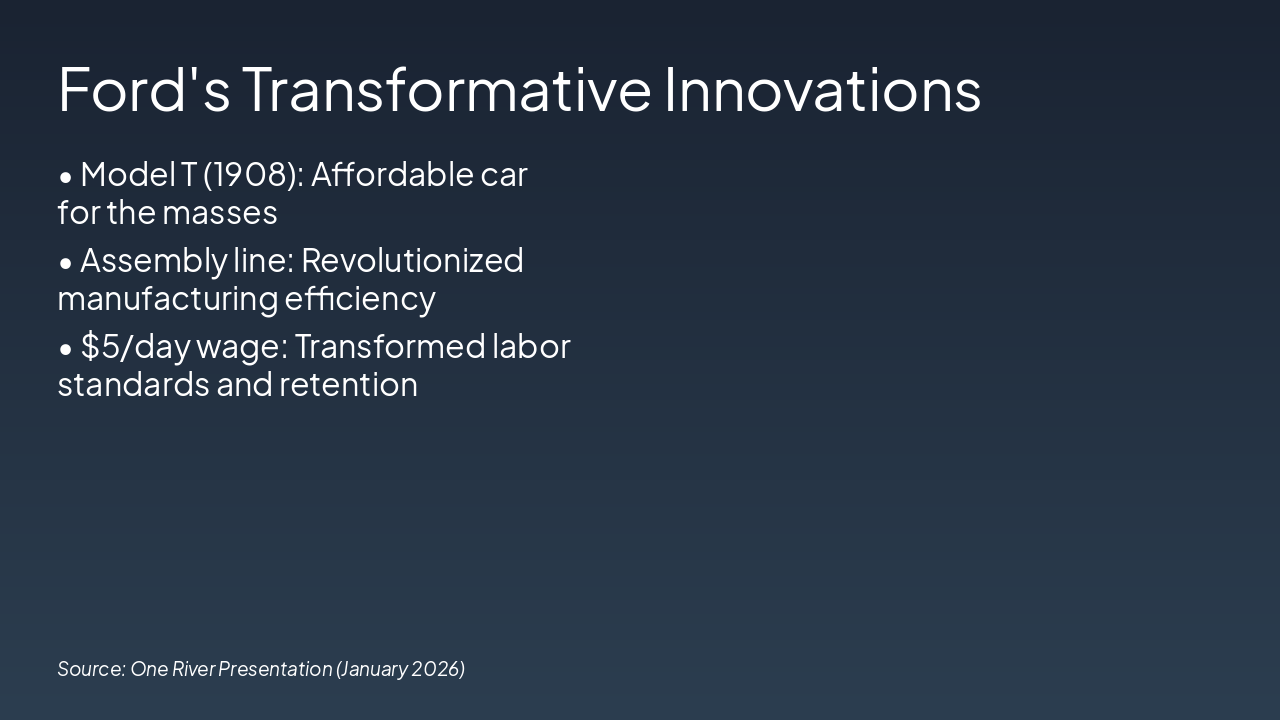 <h1>Connecting the Titans:</h1><h1>Shared Legacy</h1><ul><li>All three scaled innovation</li><li>Empowered consumers</li><li>Boosted the economy</li></ul><blockquote>'American Dream Engines'</blockquote><p class='callout'>Lessons for Today’s Leaders</p><p>Thank You</p>