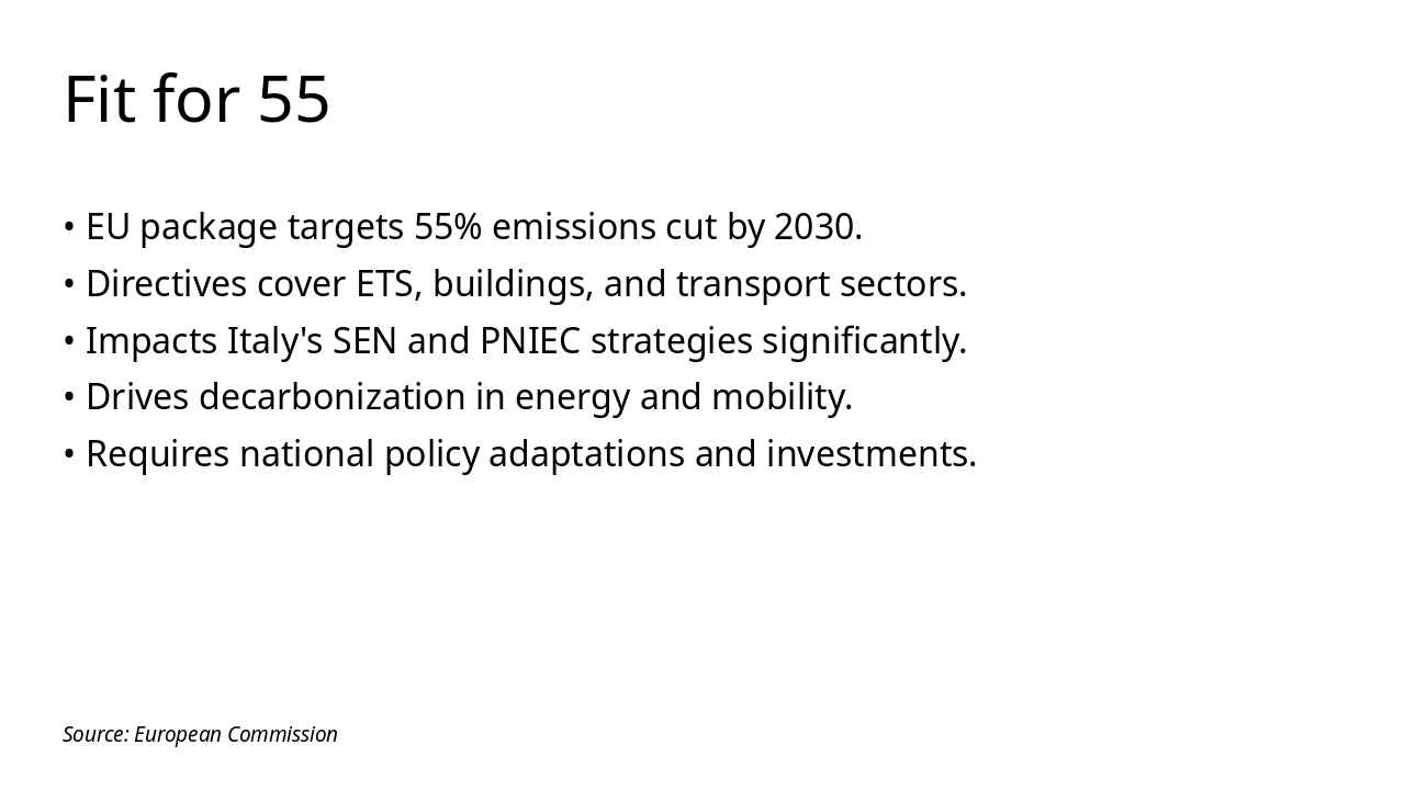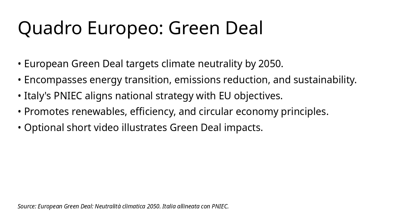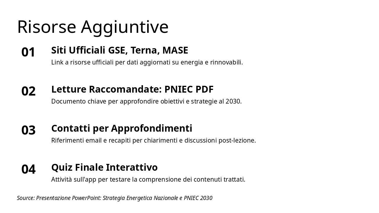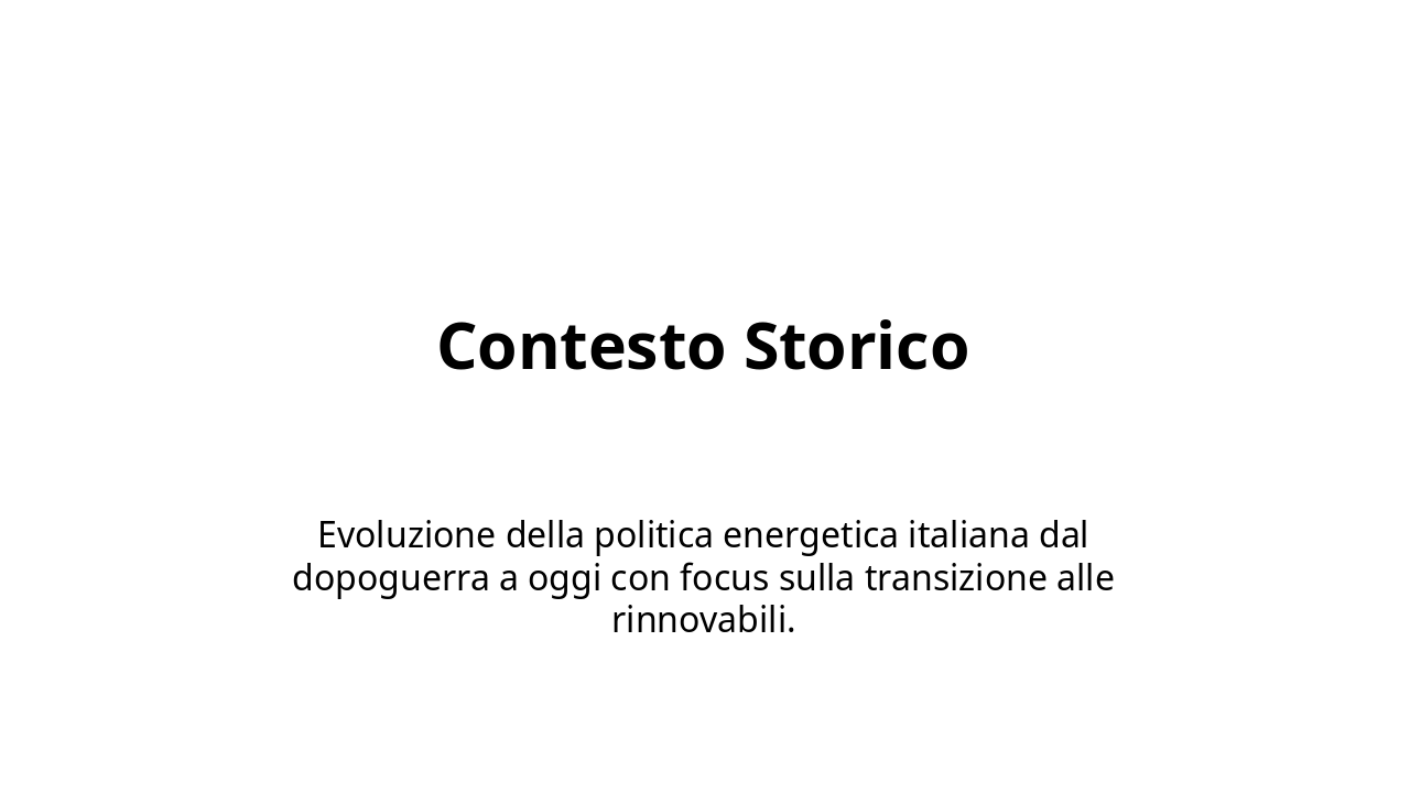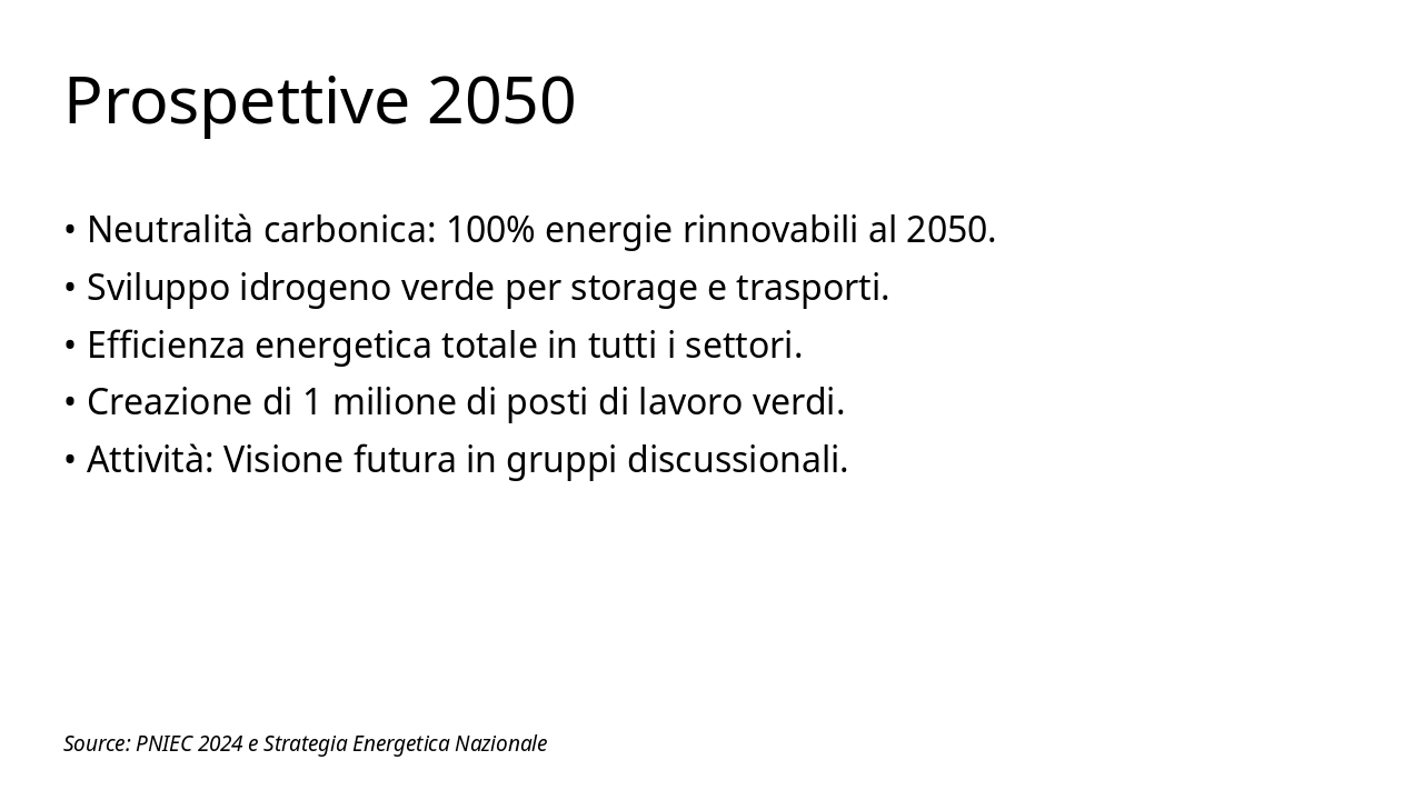 Introduci l'analisi dei documenti chiave per la strategia energetica italiana, preparando il terreno per confronti e grafici successivi. Durata stimata: 20-25 minuti. Includi pausa per domande.