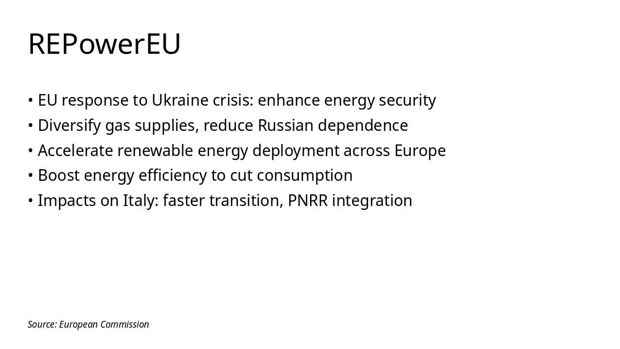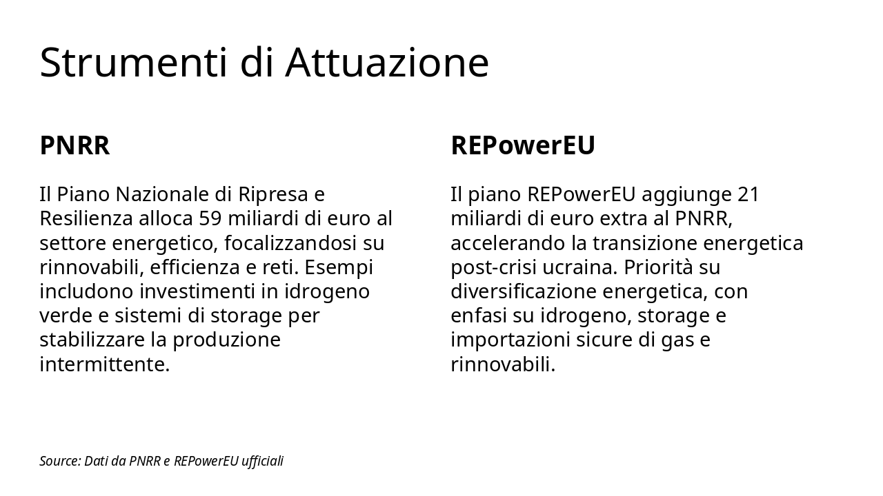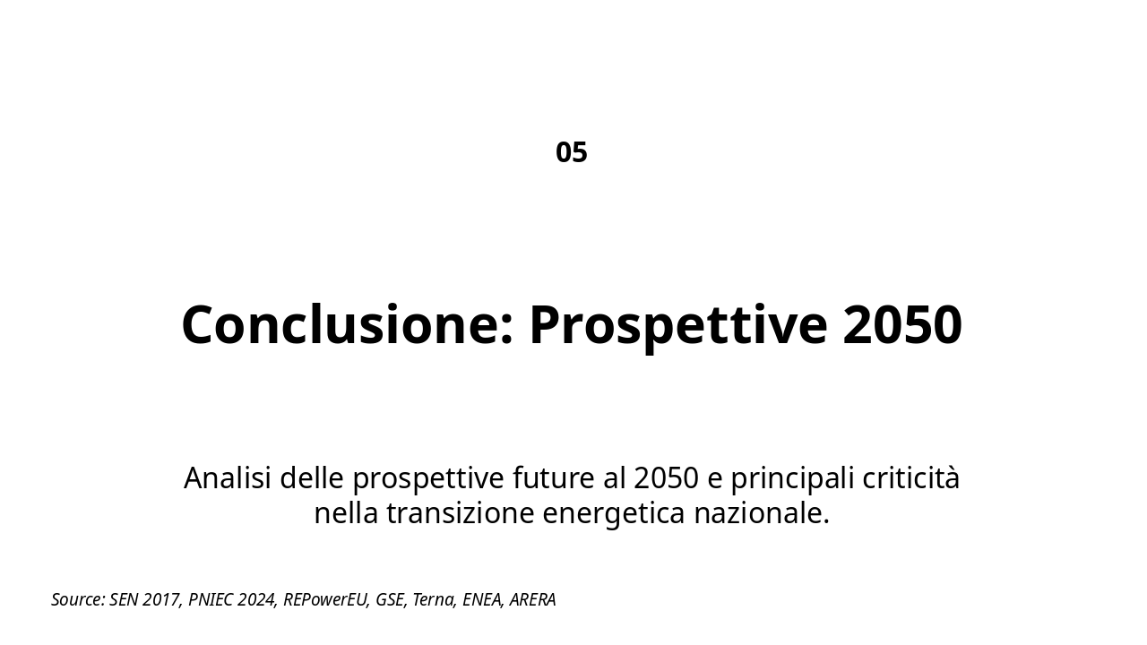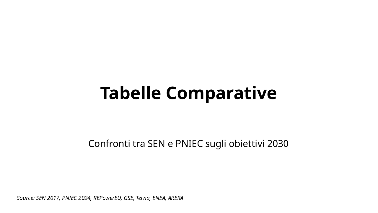 Source: SEN 2017, PNIEC 2024, REPowerEU, GSE, Terna, ENEA, ARERA