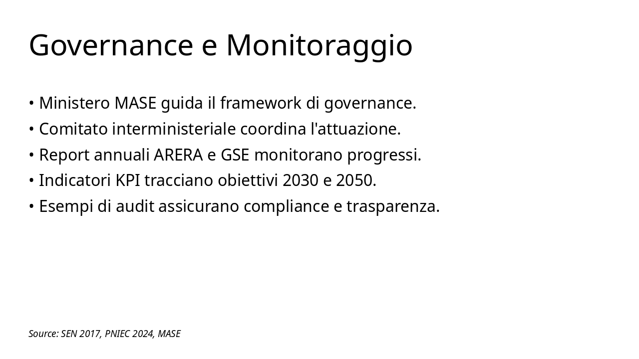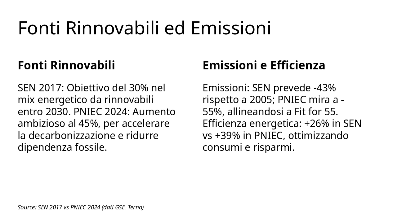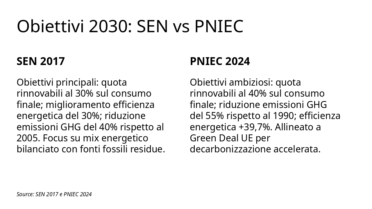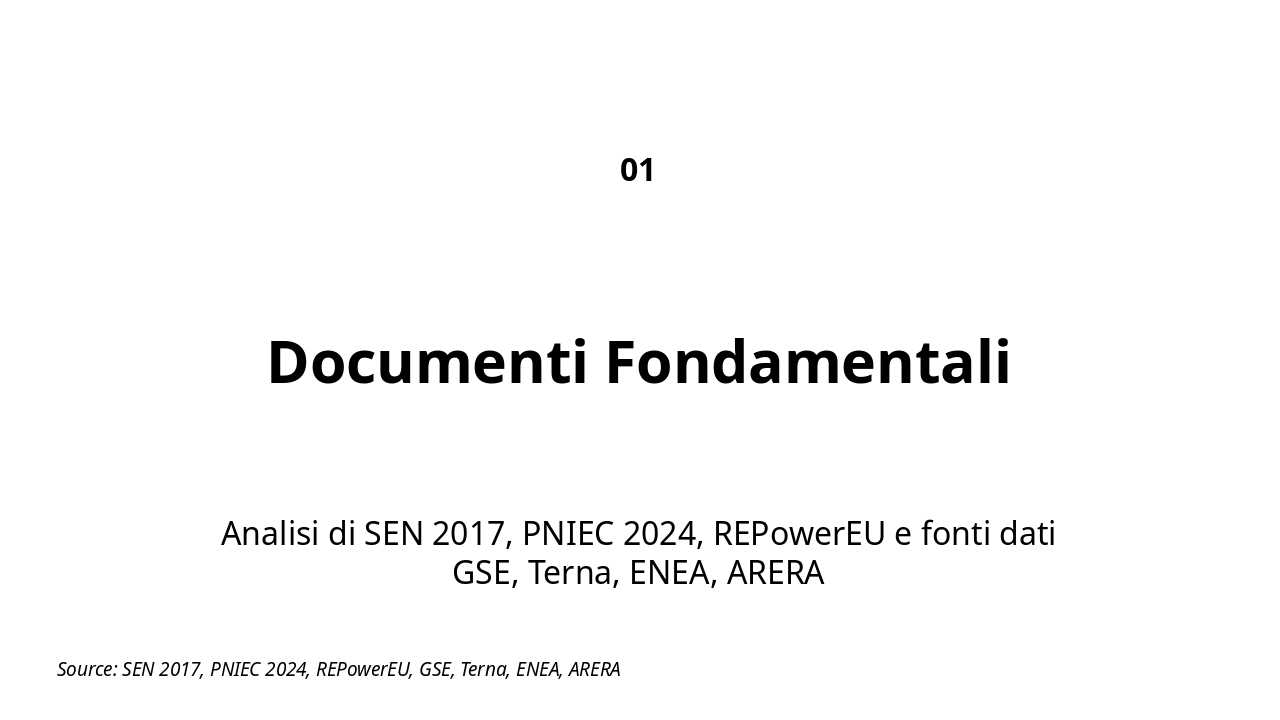 Analisi di SEN 2017, PNIEC 2024, REPowerEU e fonti dati GSE, Terna, ENEA, ARERA