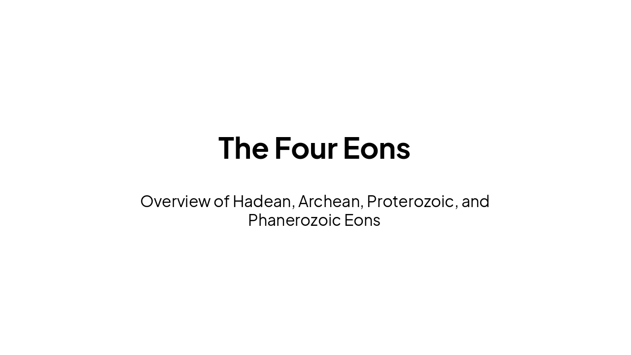 Overview of Hadean, Archean, Proterozoic, and Phanerozoic.