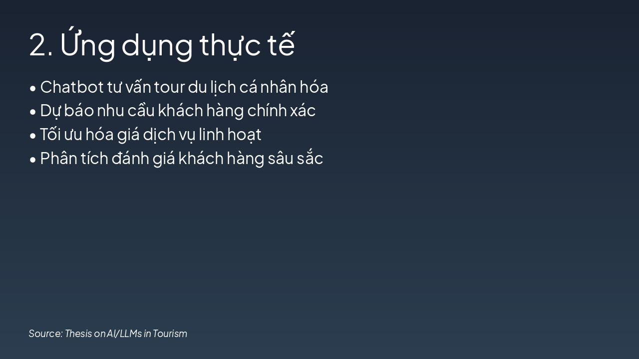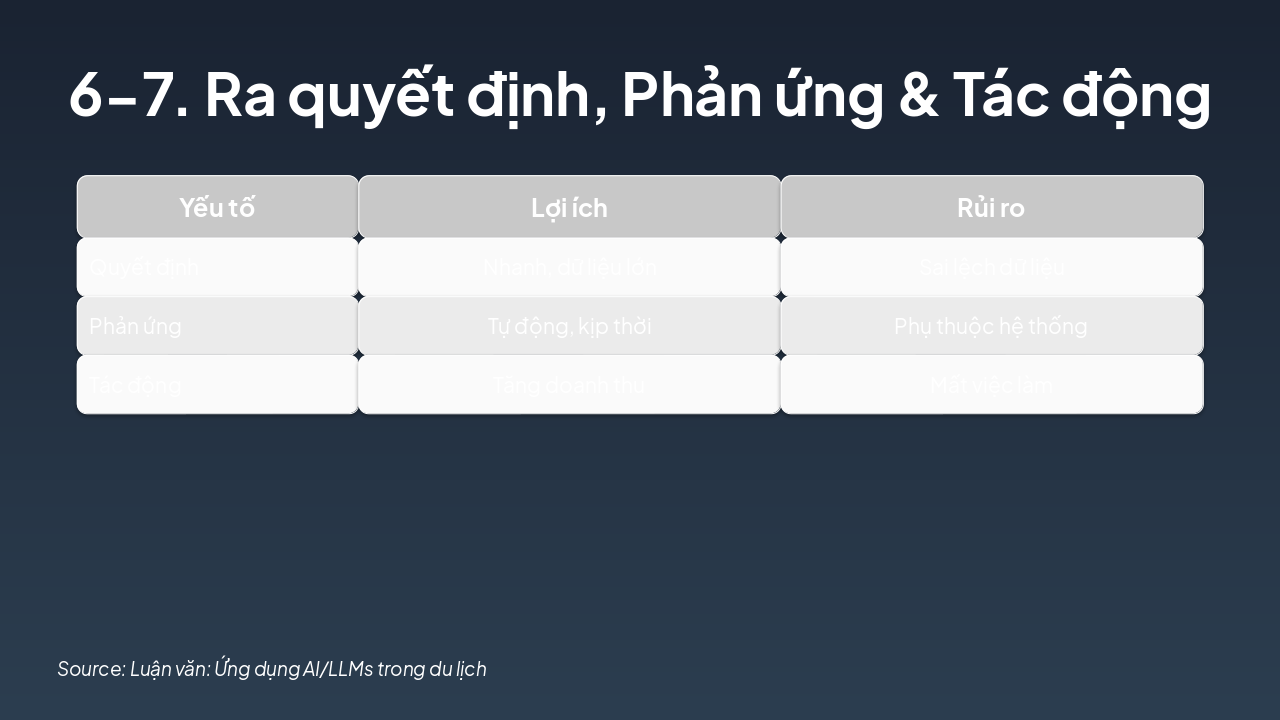 Hỗ trợ đa ngôn ngữ, ra quyết định và tác động đến ngành. Source: Báo cáo luận văn: Ứng dụng AI/LLMs trong ngành du lịch