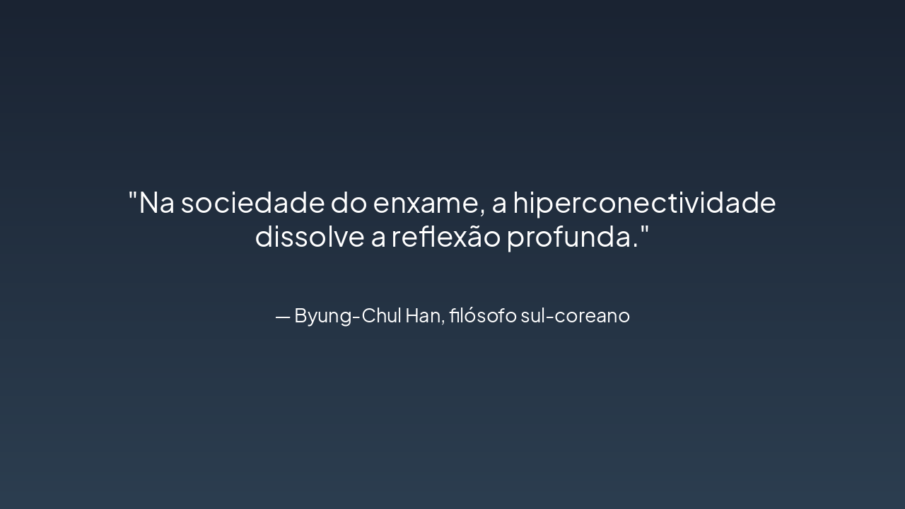 Apresente o fluxograma como síntese da discussão, destacando a integração progressiva da IA com reflexões éticas de Byung-Chul Han, identificando desafios e propondo equilíbrio homem-máquina. Enfatize citações sobre hiperconectividade e a necessidade de reflexão na sociedade do enxame.