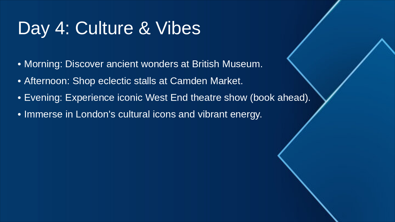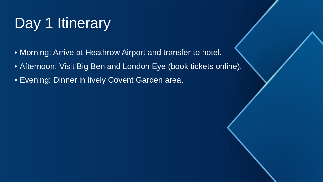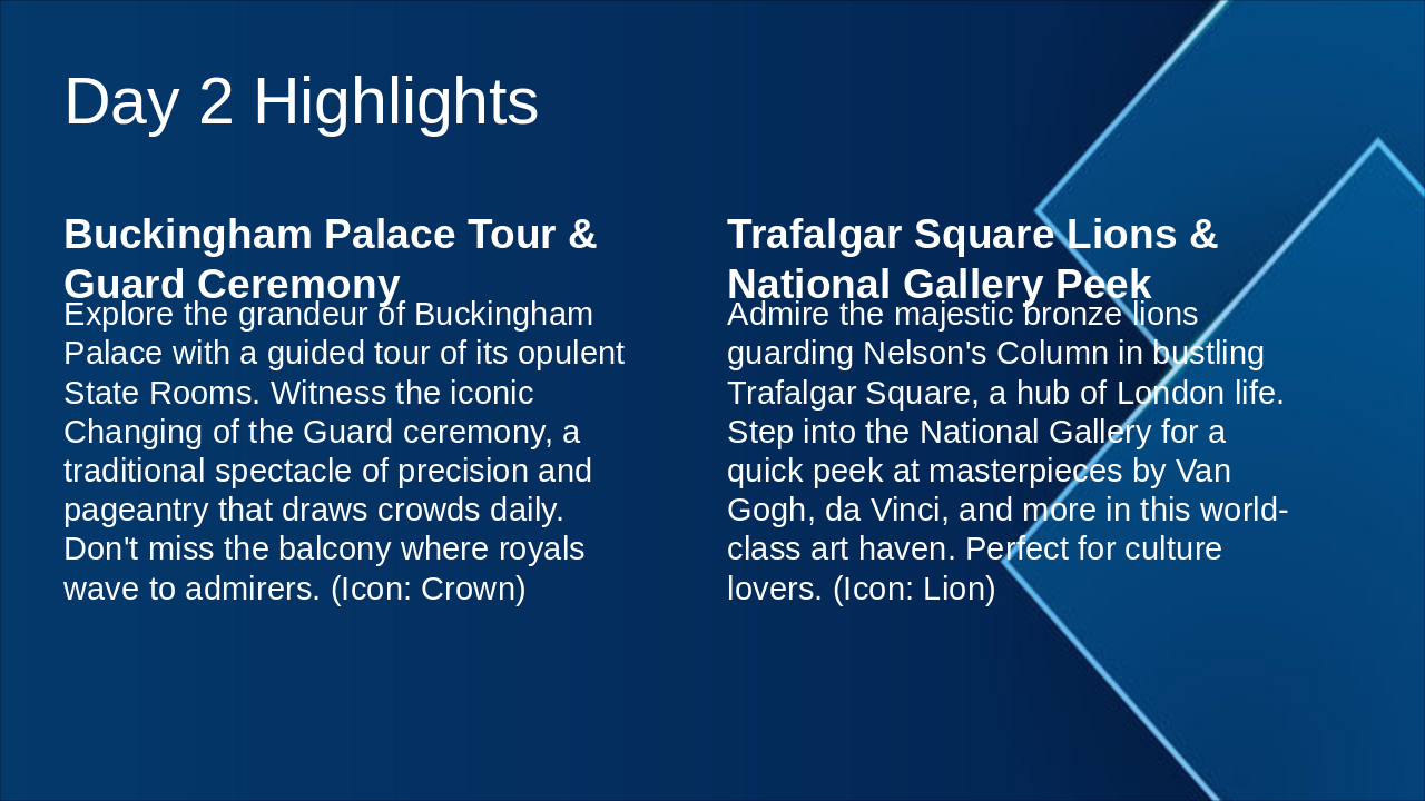 Introduce the 5-day London trip structure, highlighting key days, tips, and costs in a modern red-blue-white theme.