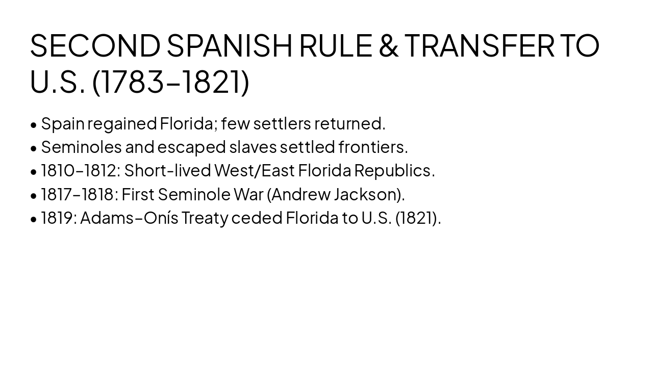 Slide 1 - Florida History: From Spain to the United States (1513–1821)