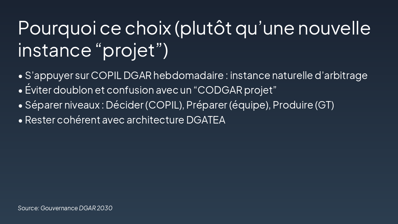 Slide 1 - DGAR 2030 / Réorganisation DGAR 2028