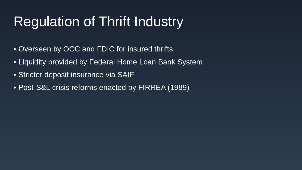 Regulation and Structure of the Thrift Industry vs. Commercial Banking