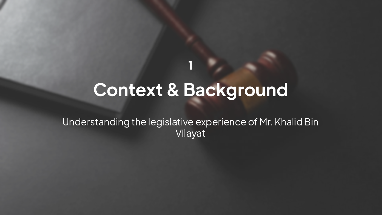 Understanding the legislative experience of Mr. Khalid Bin Vilayat