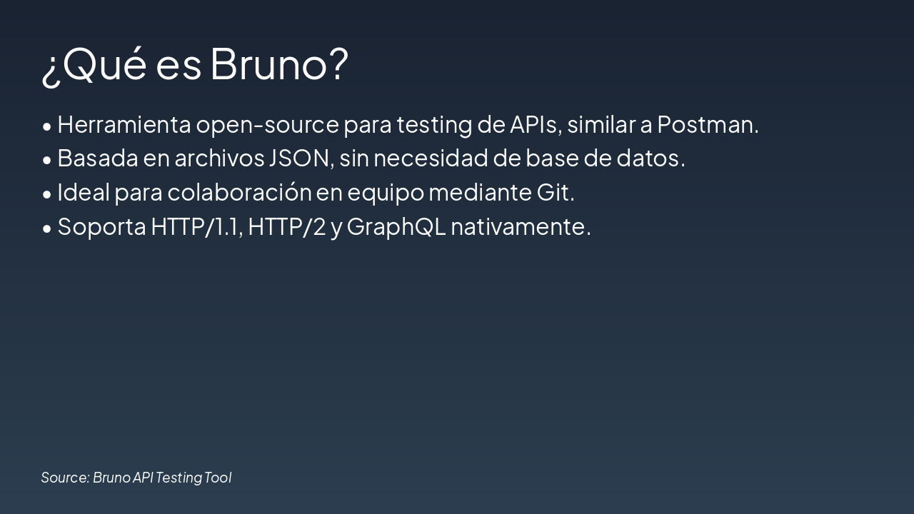 Presentación de la herramienta Bruno para pruebas y documentación de APIs.