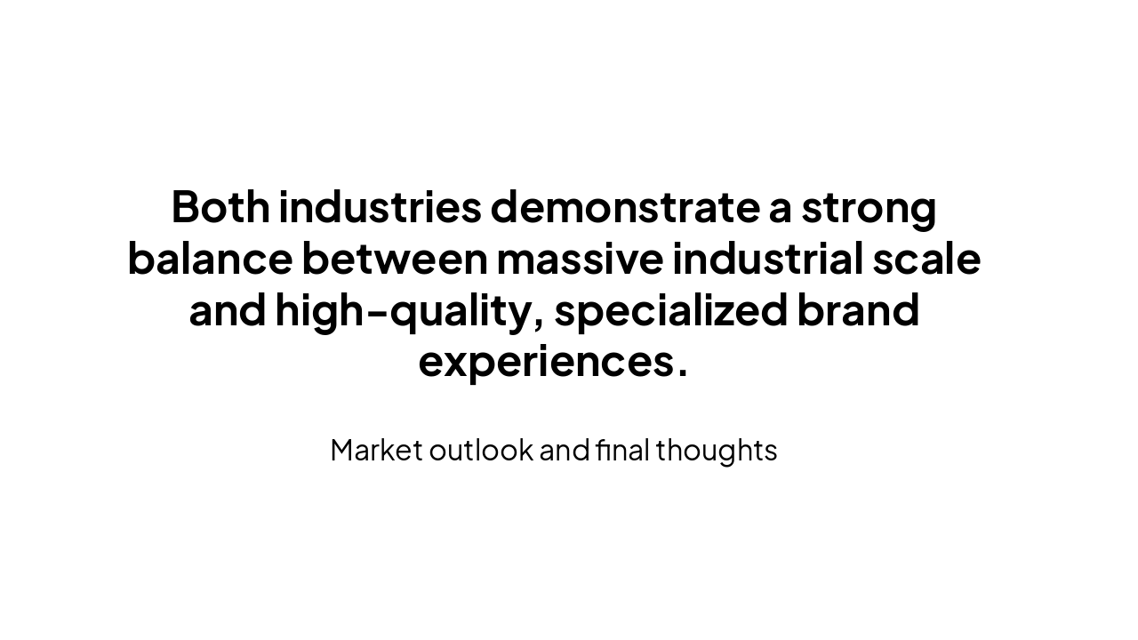 Both industries demonstrate a strong balance between massive industrial scale and high-quality, specialized brand experiences.