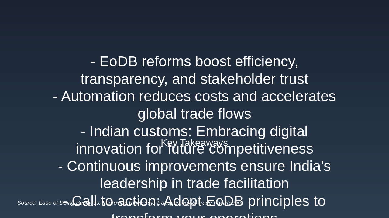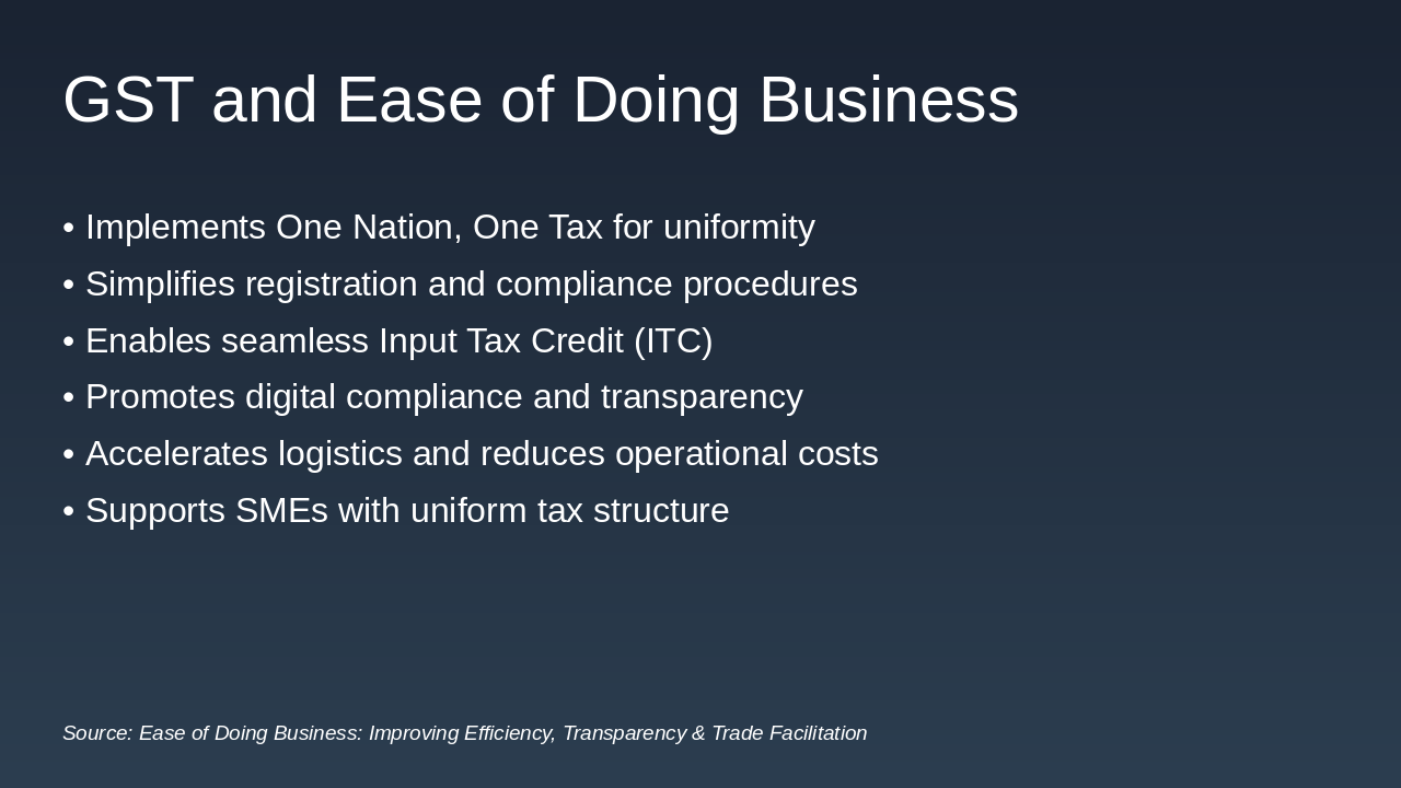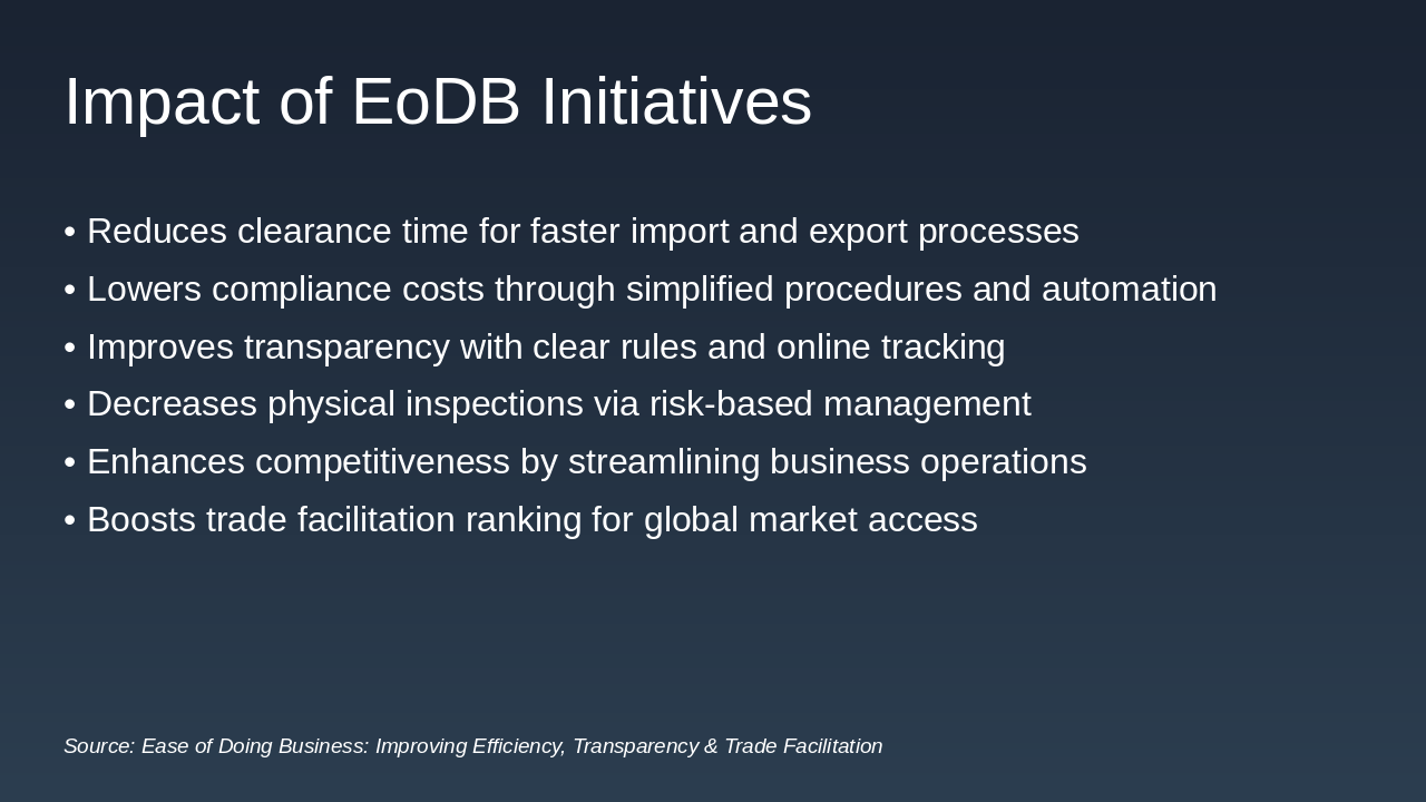 Source: Ease of Doing Business: Improving Efficiency, Transparency & Trade Facilitation