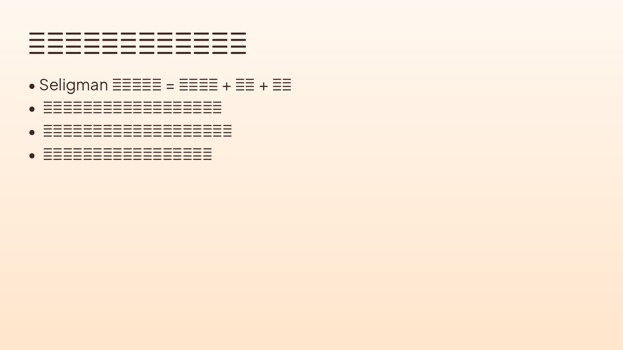Seligman's theory in positive psychology defines happiness as the combination of positive emotions, engagement, and meaning. Positive emotions involve enjoying the present for satisfaction and vitality; engagement is the immersive "flow" state of full concentration; and meaning pursues values beyond self-realization.