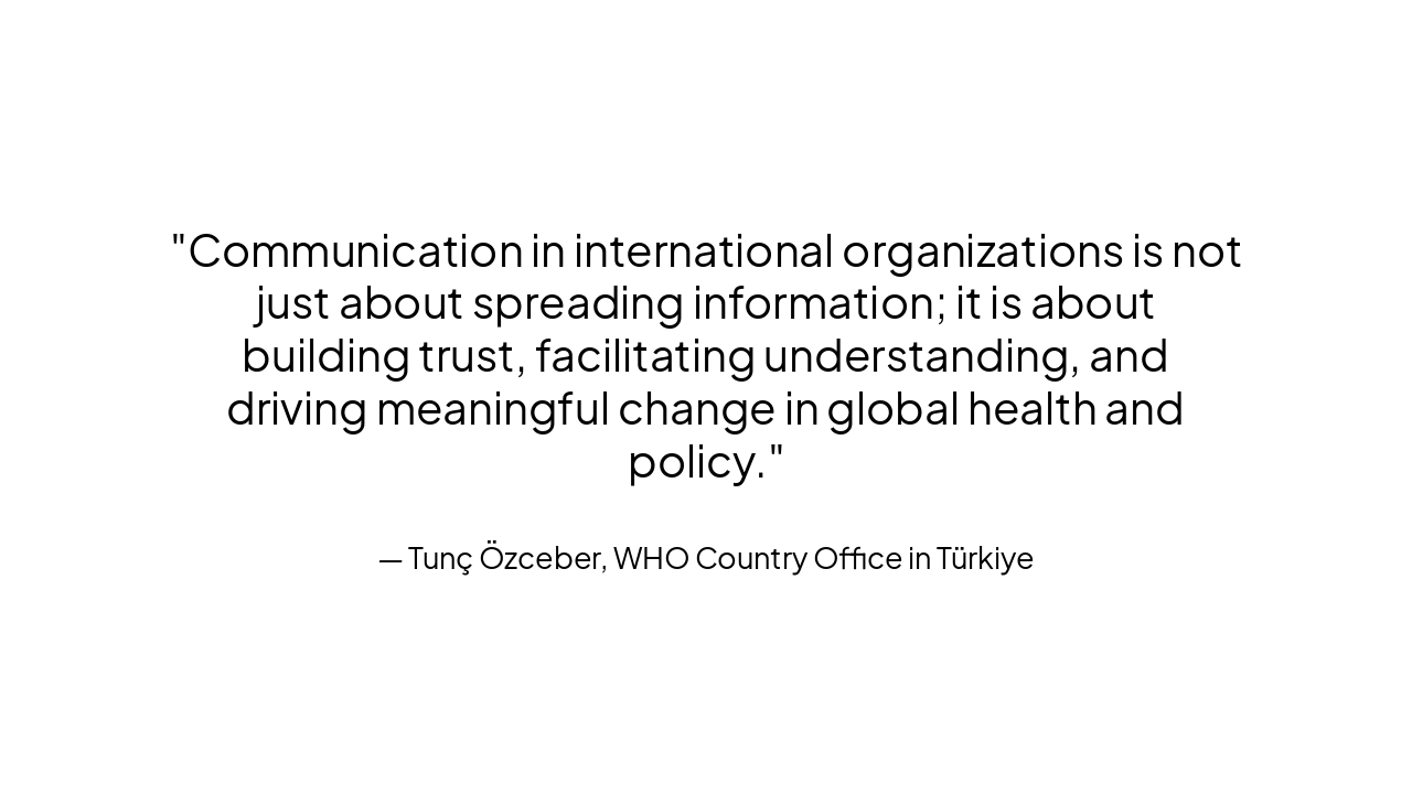 > Communication in international organizations is not just about spreading information; it is about building trust, facilitating understanding, and driving meaningful change in global health and policy.