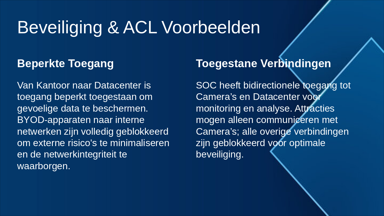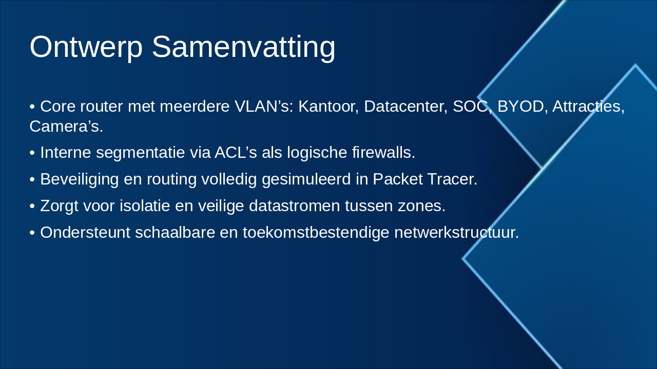 Samenvatting van VLAN's, ACL's, testresultaten en voorbeelden van toegangscontrole.