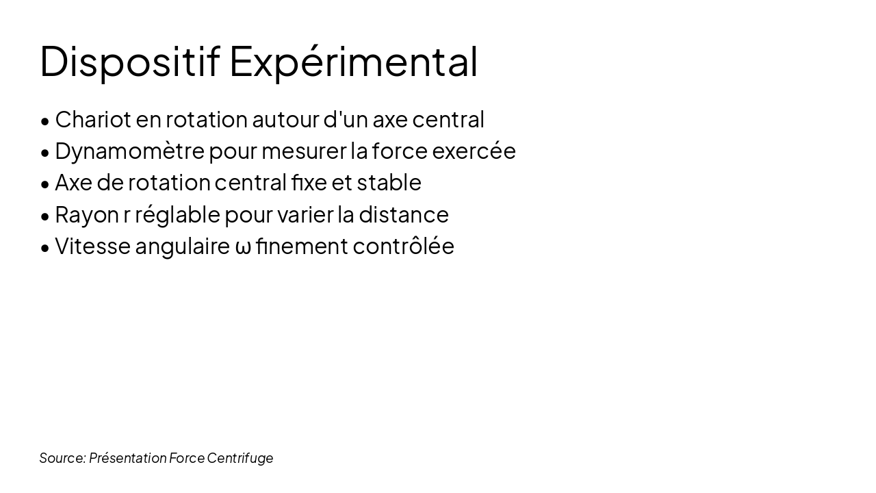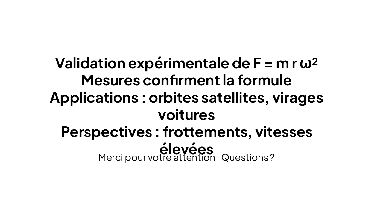 Synthèse des résultats et perspectives. Source: Présentation PowerPoint sur la Force Centrifuge