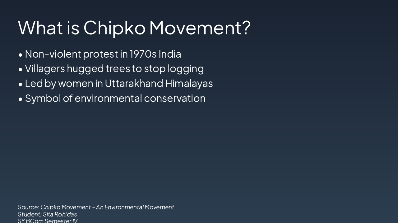 Source: Chipko Movement – An Environmental Movement Student: Sita Rohidas Class: SY BCom Semester IV Subject Teacher: Rupali Mam