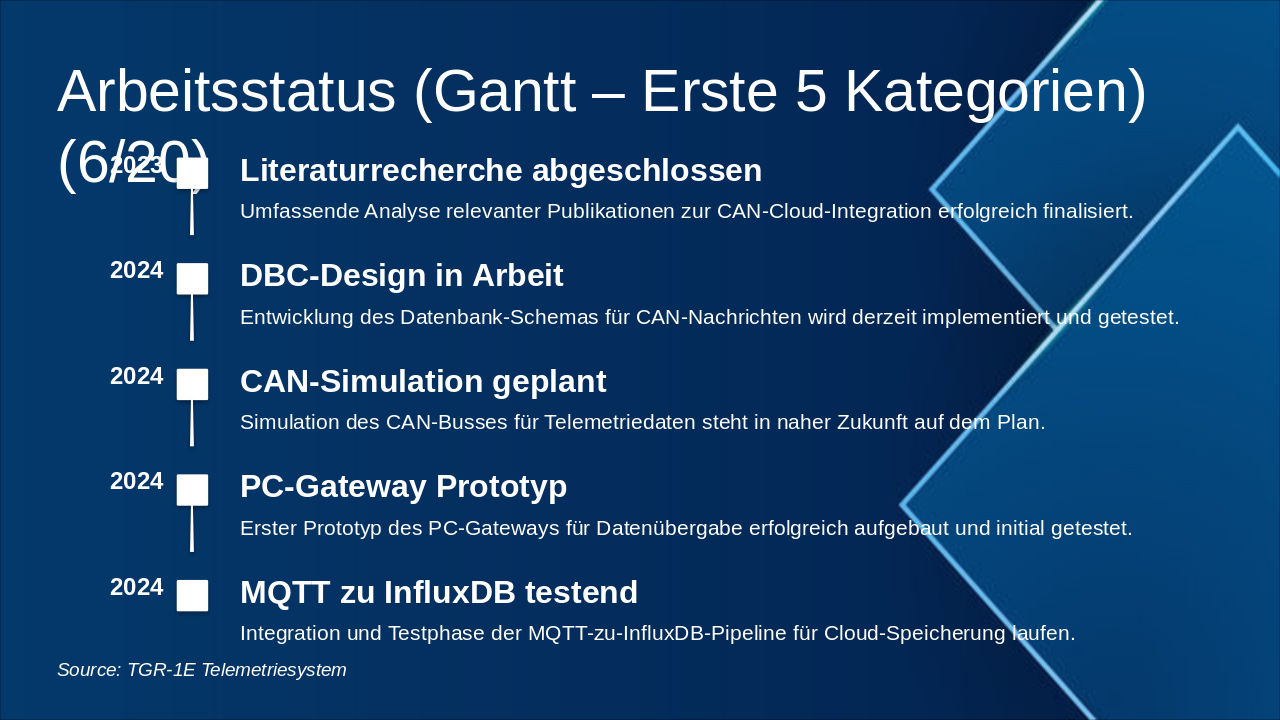 Detaillierte Schemata, Gantt-Charts und Fortschrittsübersichten. Source: TGR-1E Telemetriesystem – Agenda der technischen Anhänge: Von Design bis Tests