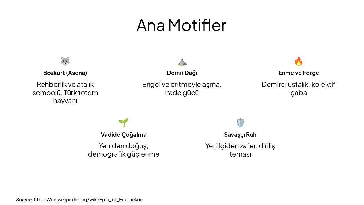 Ergenekon Destanı'na giriş, detaylı özeti, Göktürk tarihi ve toplumsal yapısı ile motiflerin derin analizi. Türk mitolojisinin Tengrist-Şamanist unsurları, Bozkurt rehberliği ve yeniden doğuş temalarını ele alan kapsamlı sunum.