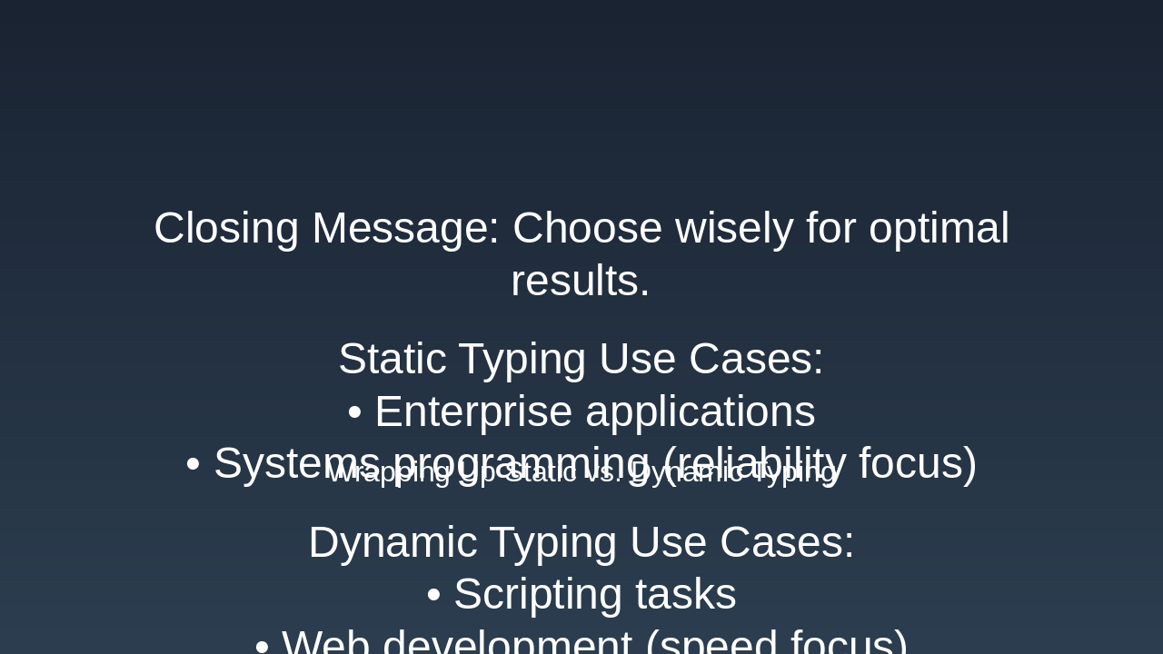 Wrapping Up Static vs. Dynamic Typing