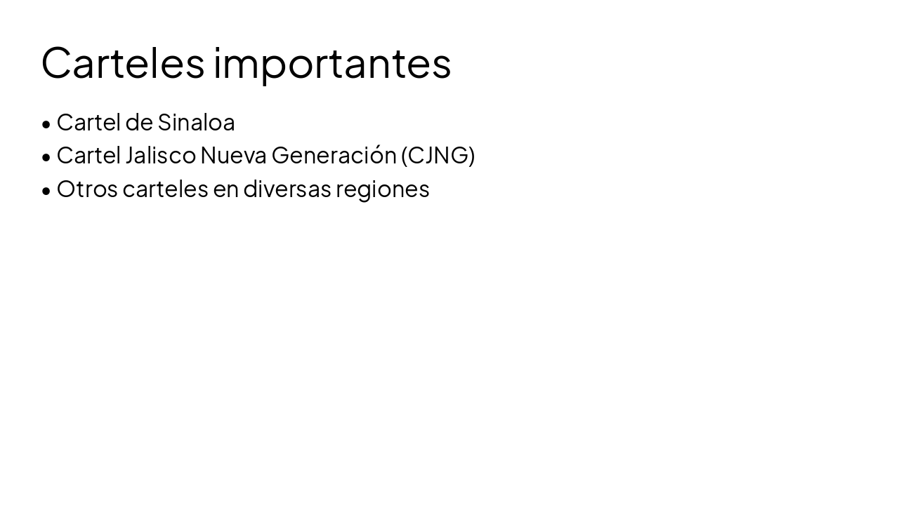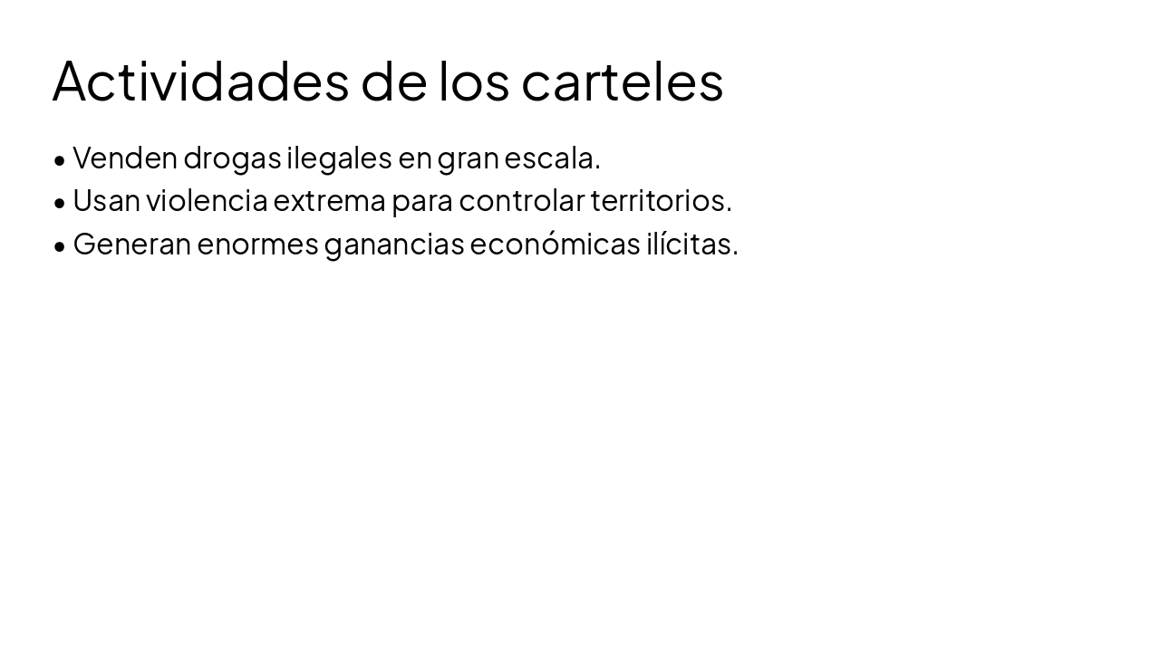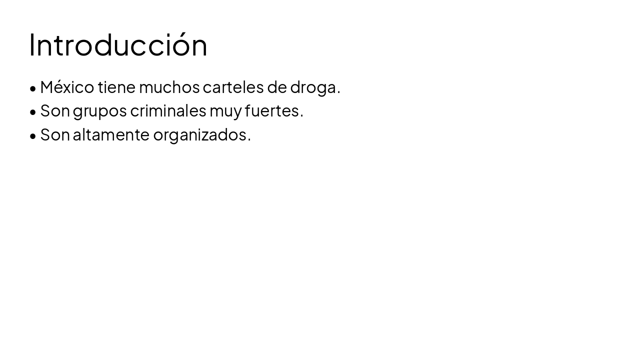 Estructura de la presentación: 1. Introducción a los carteles. 2. Principales carteles. 3. Sus actividades. 4. Problemas causados. 5. Respuesta estatal. 6. Conclusión.