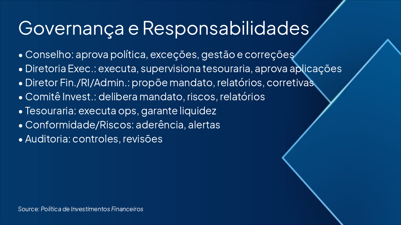 Slide 1 - Política de Investimentos Financeiros – Governança e Definições