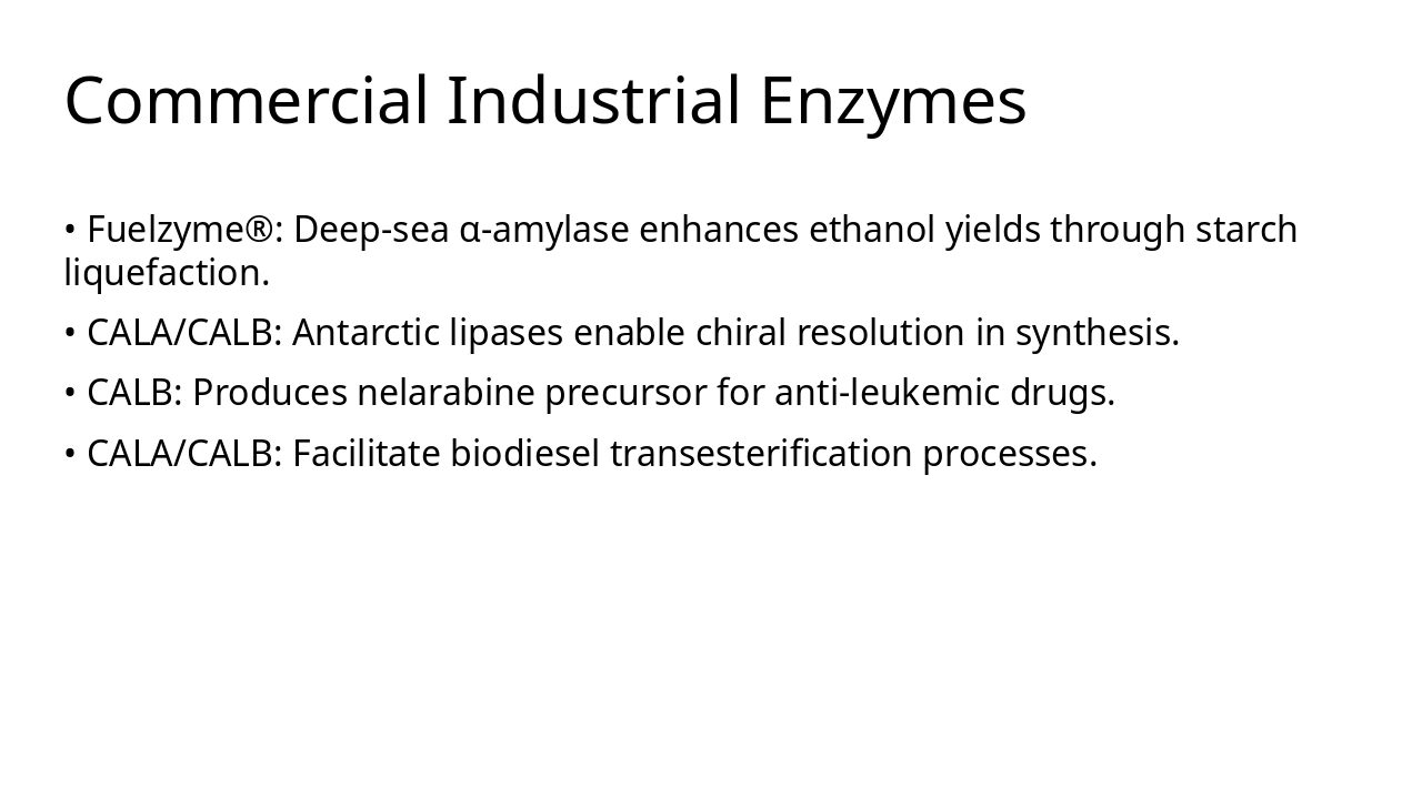 Deep-sea microbes experience immense hydrostatic pressure. Their barophilic enzymes withstand pressures exceeding hundreds of atmospheres, valuable in: