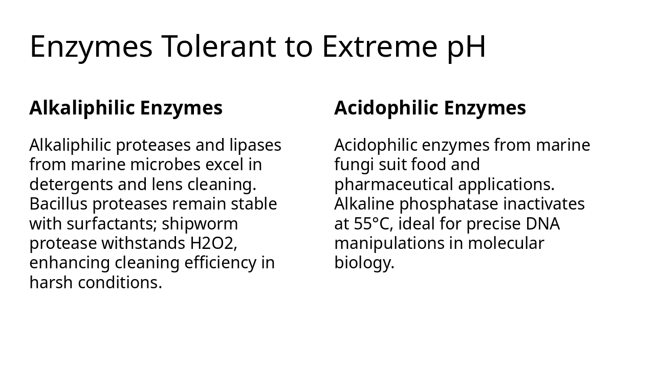 While most proteins denature at extreme pH, some marine enzymes thrive in strongly acidic or alkaline conditions. These are critical for industries that operate under such conditions.