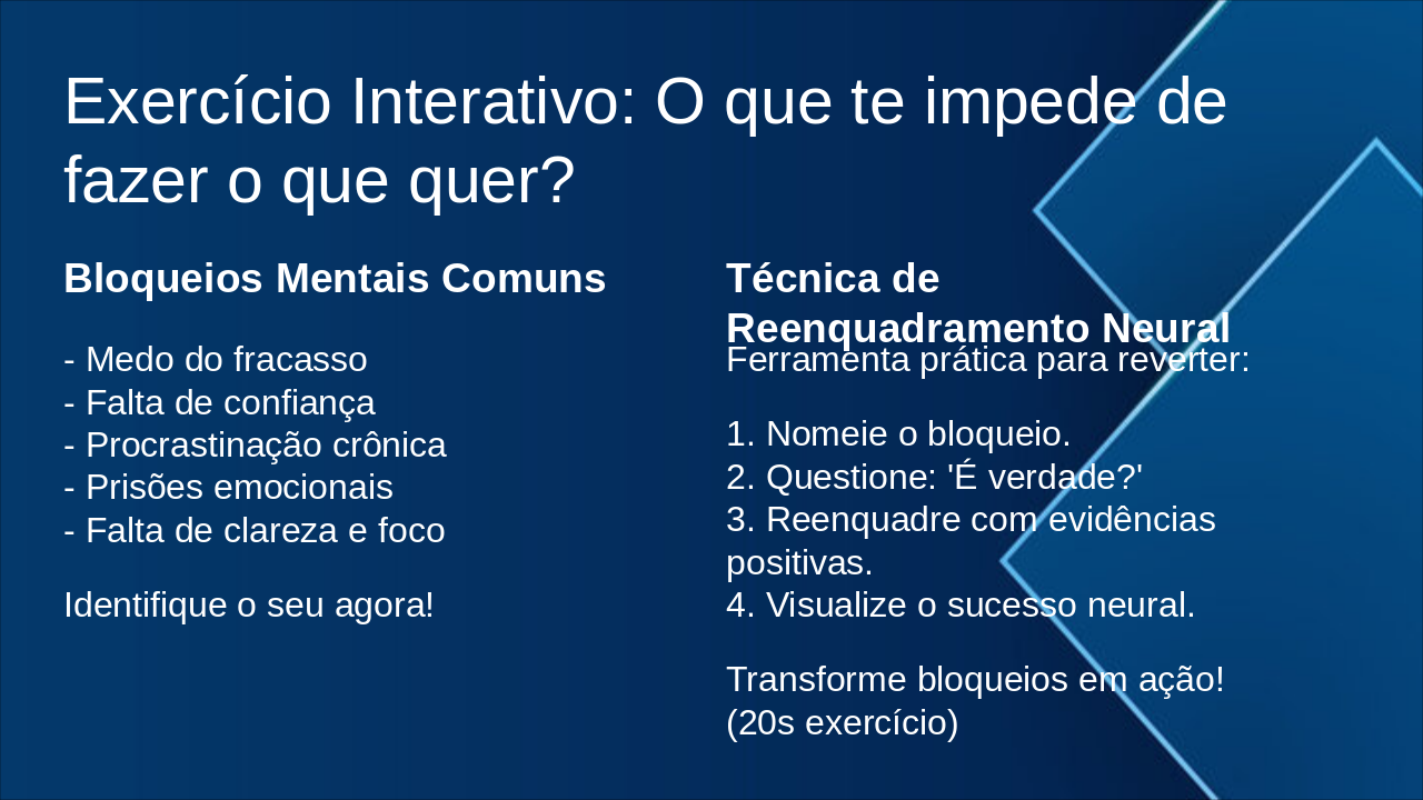 | Bloqueios Mentais Comuns | Técnica de Reenquadramento Neural |