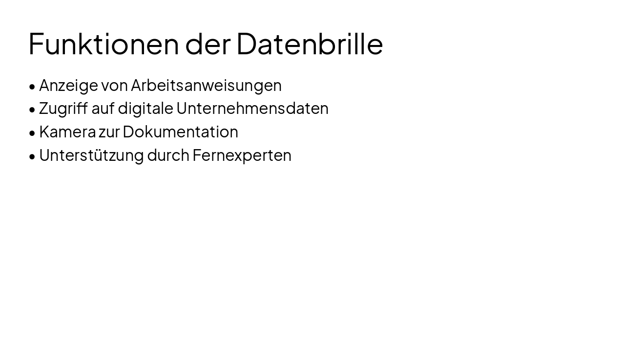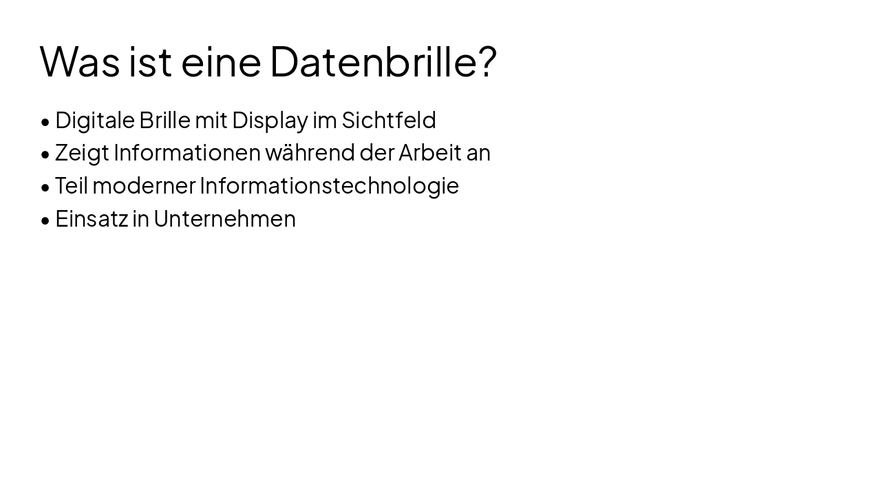 This is a title slide titled "Datenbrille im Unternehmen" (Data Glasses in the Company). The subtitle reads "Wirtschaftsinformatik" (Business Informatics) and "Unternehmen als synergetisches System" (Company as a Synergetic System).