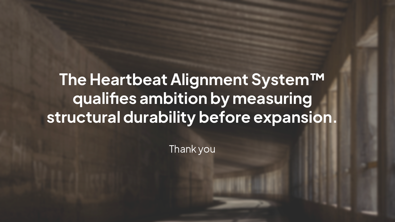 The Heartbeat Alignment System™ qualifies ambition by measuring structural durability before expansion.