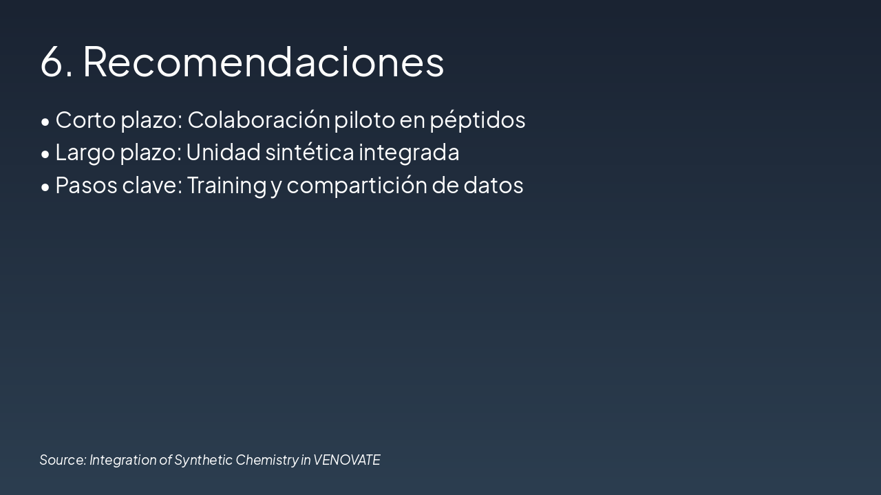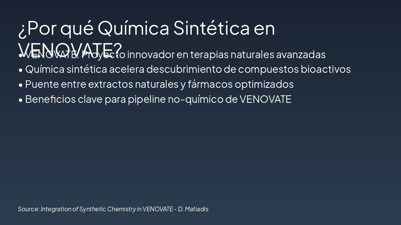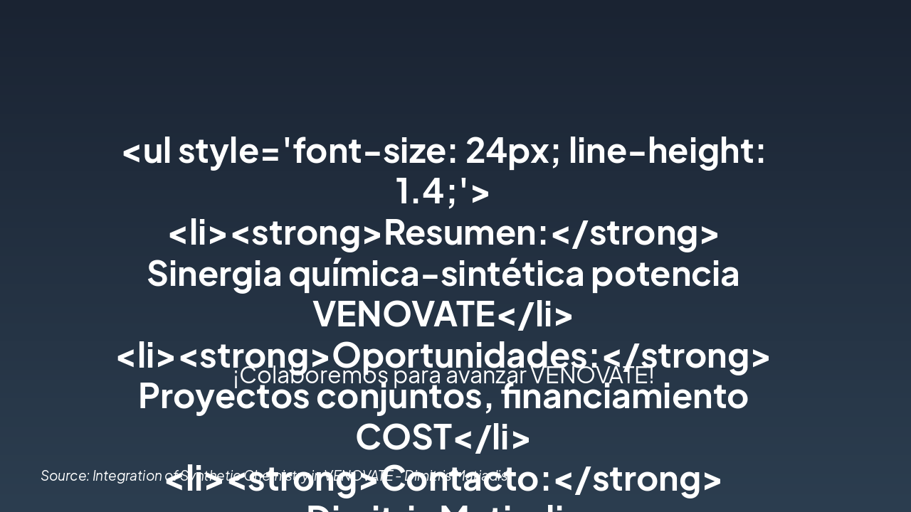 Summary and collaboration prospects Source: Integration of Synthetic Chemistry in VENOVATE