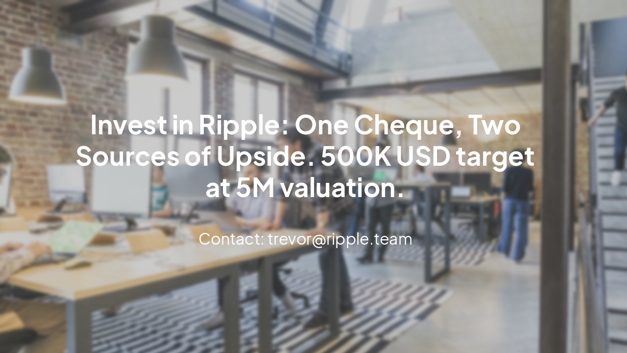 Invest in Ripple: One Cheque, Two Sources of Upside. 500K USD target at 5M valuation.