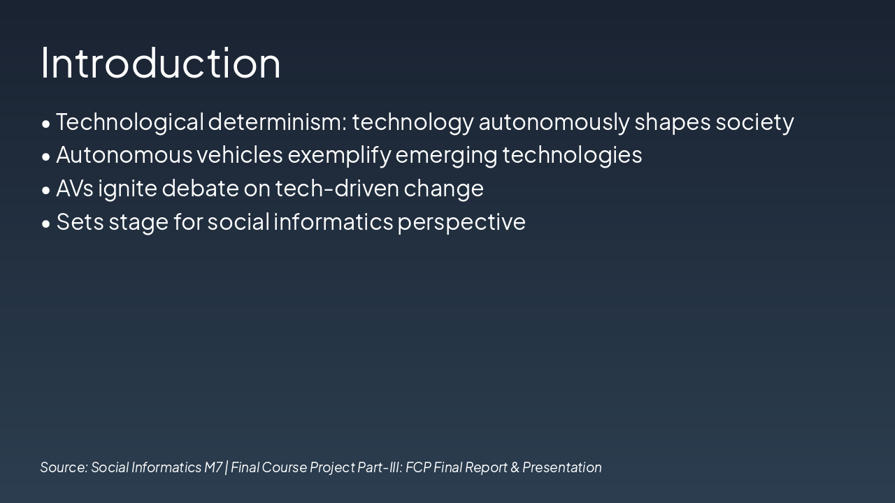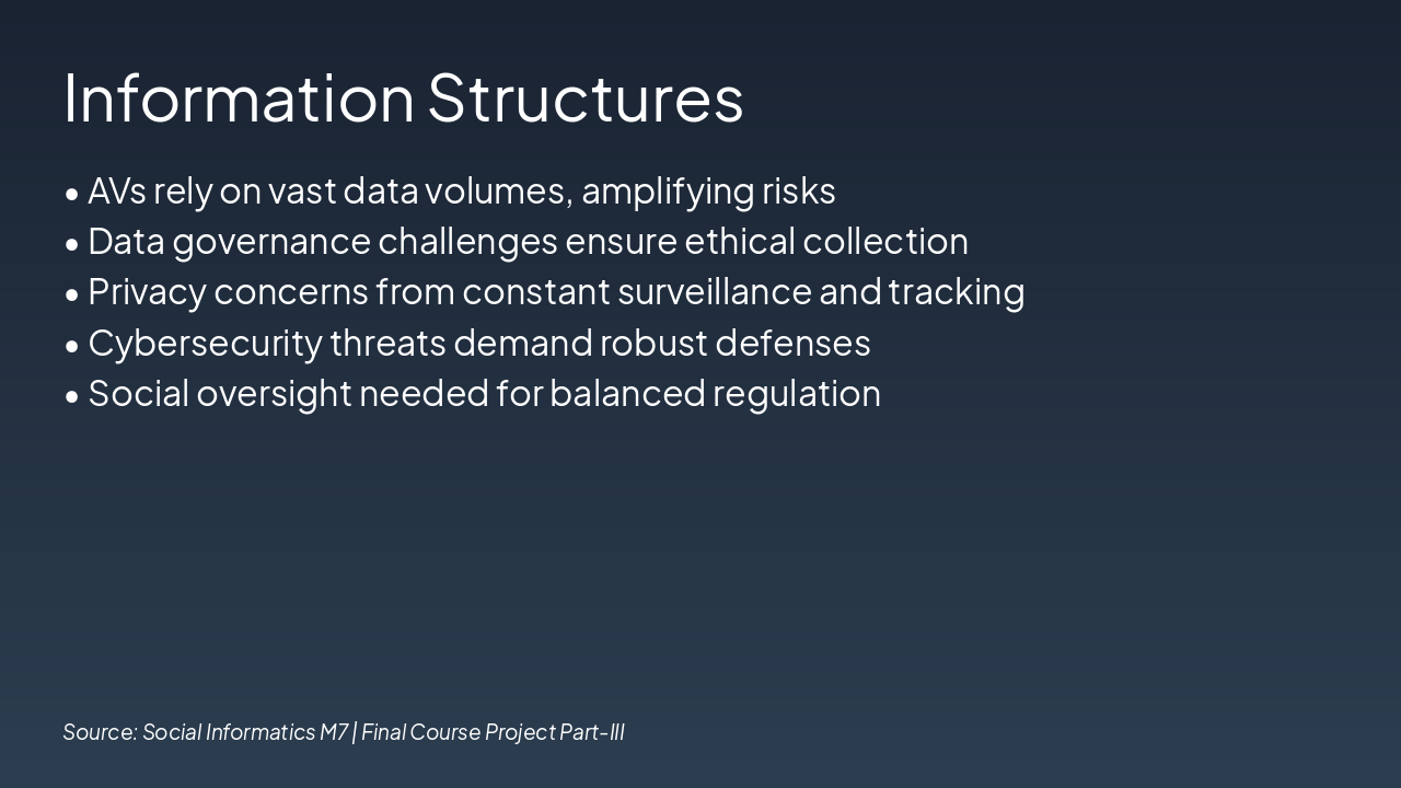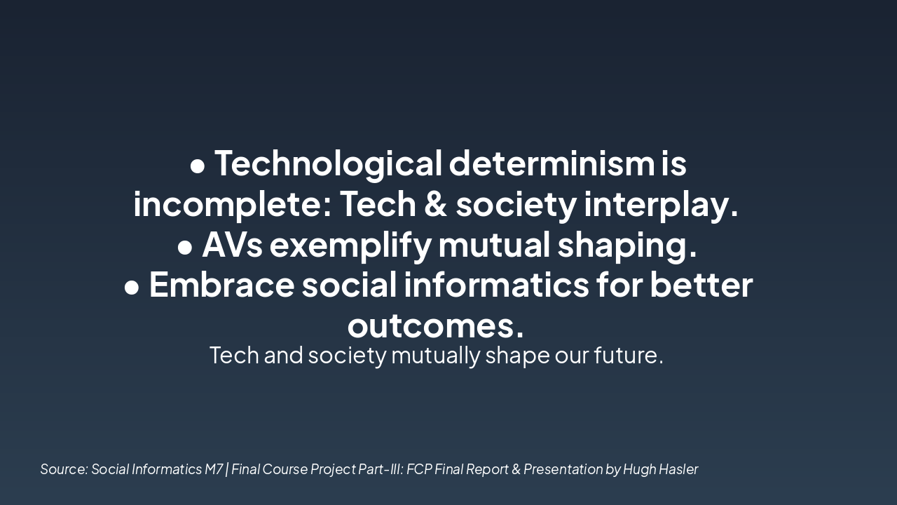 Sensors, AI, and road systems are essential for AV success. Emphasize the need for equitable access to infrastructure.