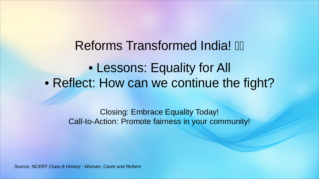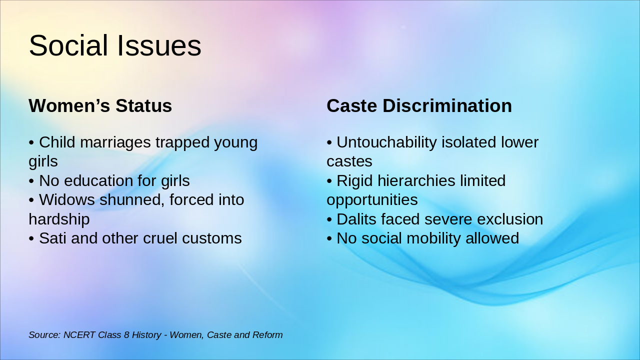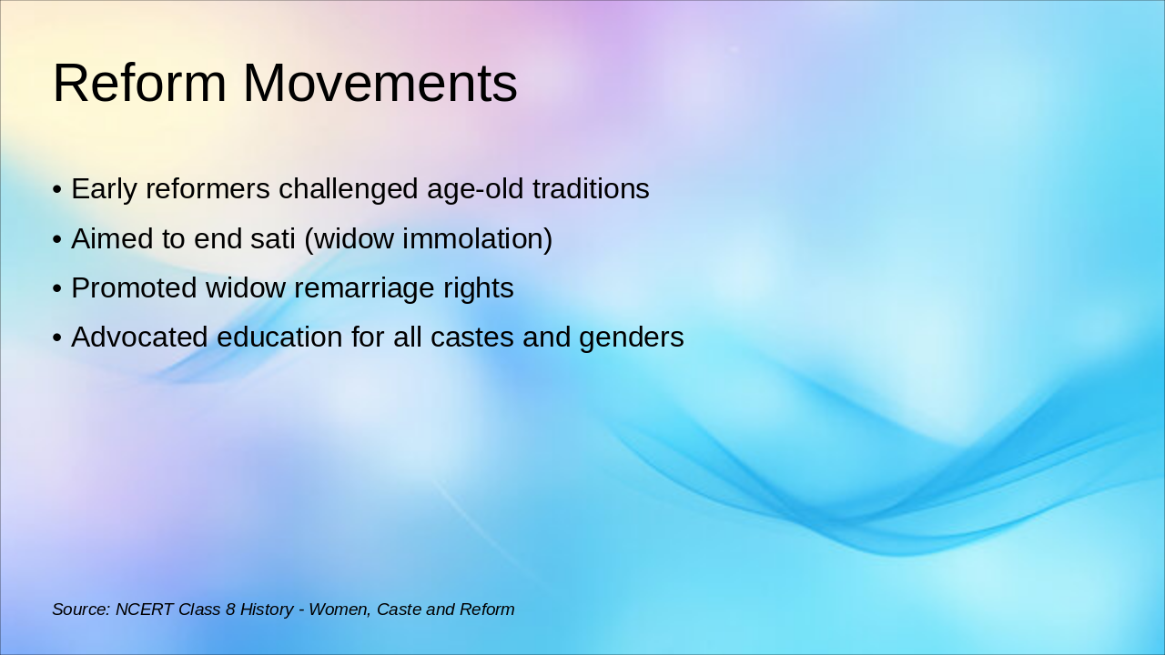 Source: NCERT Class 8 History - Women, Caste and Reform