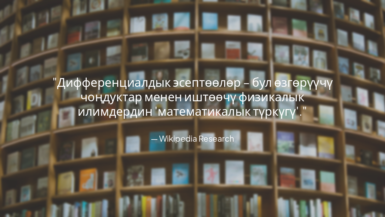 Дифференциалдык эсептөөлөр – математиканын жана табигый илимдердин негизи. Алар кылымдар бою өнүгүп, бүгүнкү күндөгү технологиянын ажырагыс бөлүгү болуп калды.