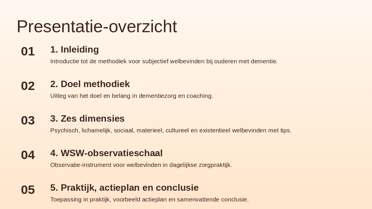 This title slide is titled "Subjectief Welbevinden bij Ouderen met Dementie," addressing subjective well-being in older adults with dementia. The subtitle welcomes viewers to an empathetic approach to well-being in dementia care.