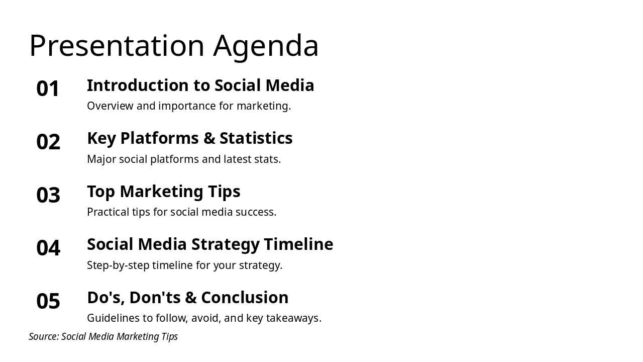 The Social Media Strategy Timeline outlines a four-week plan: Week 1 focuses on audience research via surveys and analytics, while Week 2 involves developing a content calendar based on insights and goals. Week 3 launches the campaign with engaging posts and monitoring, followed by Week 4's analysis, feedback, and optimization for better results.