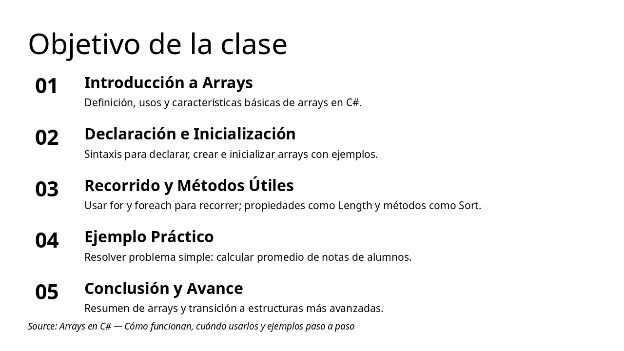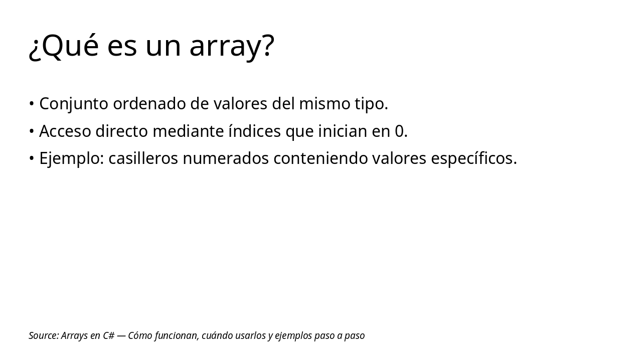 int[] numeros = {1, 2, 3, 4, 5}; for (int i = 0; i < numeros.Length; i++) { Console.WriteLine(numeros[i]); }