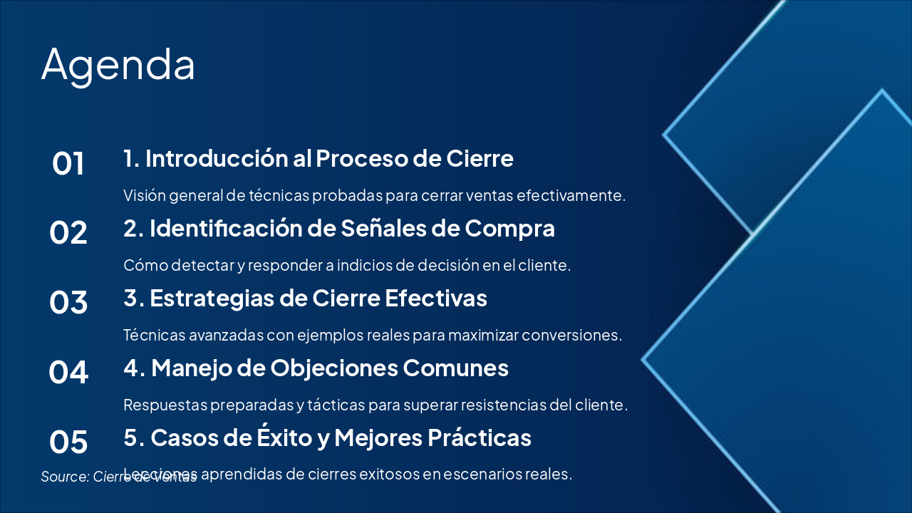 Explicar cada paso con ejemplos prácticos de cierre exitoso, enfatizando timing y confianza.