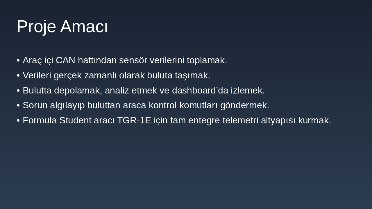 Araç içi sensör verilerinin bulut tabanlı izlenmesi ve kontrolü Sunumu Hazırlayan: [Kullanıcı Adı] Kurum: [Takım veya Üniversite İsmi]
