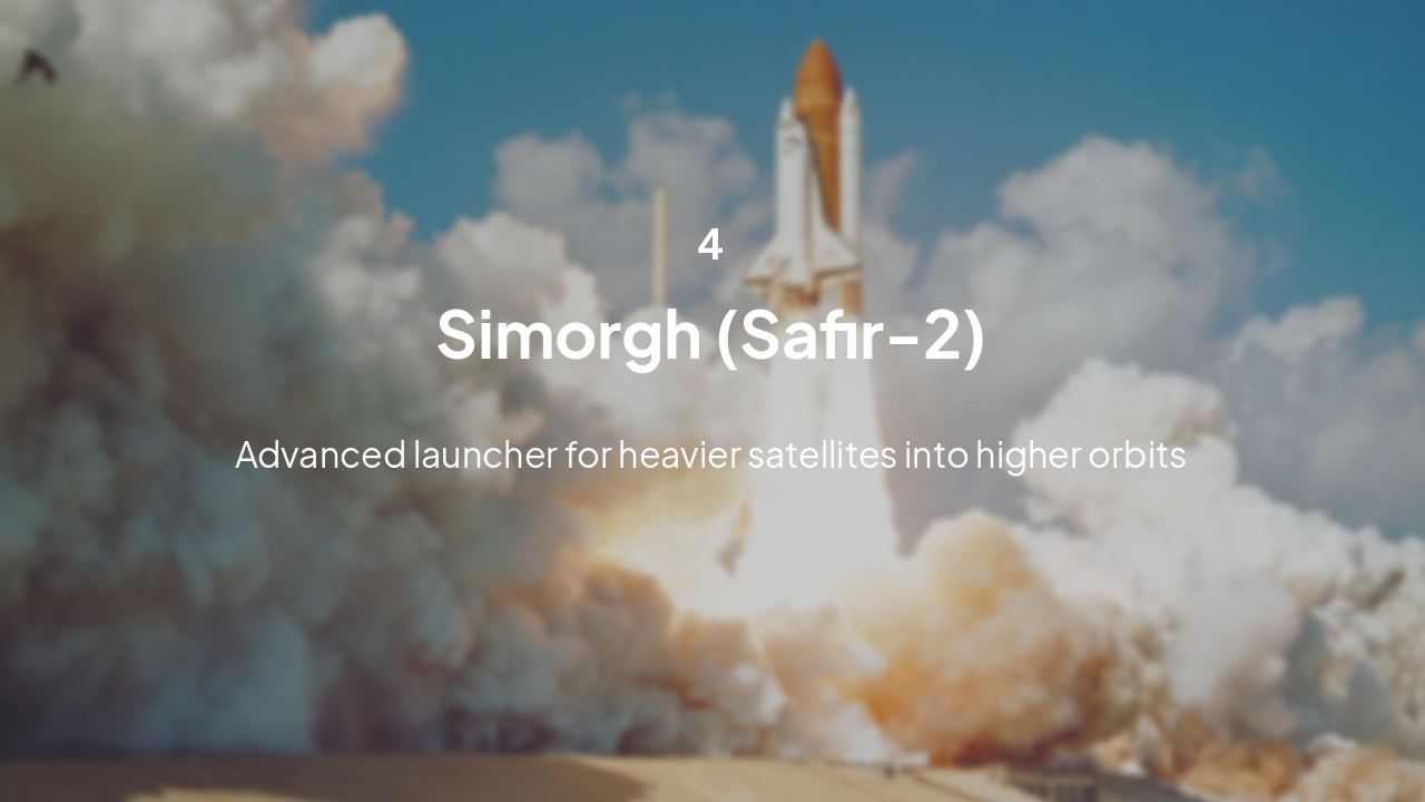 1958: UN COPUOS Founding Iran among 24 founding members 2009: Omid Launch First indigenous satellite via Safir rocket Feb 2010: Simorgh Unveiled By President Ahmadinejad Apr 2016: Simorgh First Launch Successor to Safir for heavier payloads