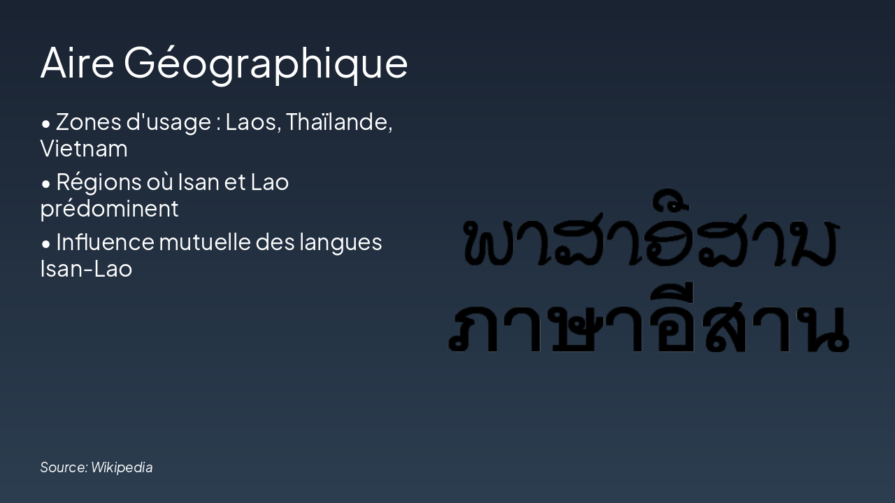 Ce diaporama de titre porte sur "La Langue Phu Thai", présenté comme une soutenance de mémoire. Il s'agit d'une langue tai du Sud-Ouest parlée au Laos, en Thaïlande et au Vietnam.