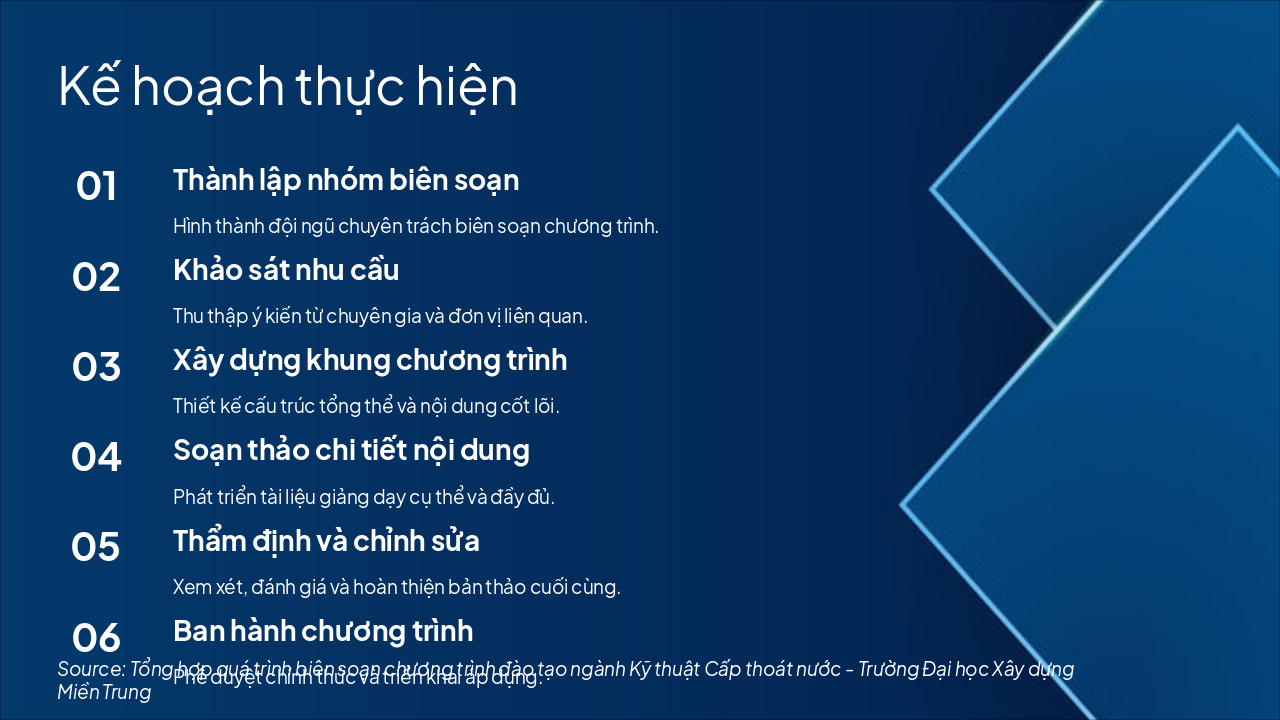 Phê duyệt chính thức và triển khai áp dụng. Source: Tổng hợp quá trình biên soạn chương trình đào tạo ngành Kỹ thuật Cấp thoát nước - Trường Đại học Xây dựng Miền Trung