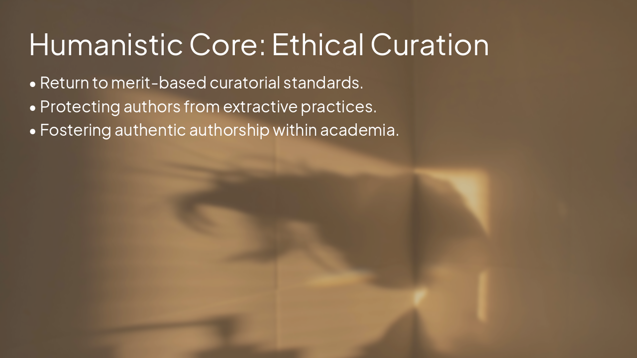 15-slide academic presentation titled 'The Mercenary Press: Money, Careerism, and the Struggle for Authentic Authorship in India' for presenter Mohammad Akram Khan at International Seminar, The Bhopal School of Social Sciences. Style: critical, gritty, reform-oriented; high-contrast visuals; minimal text; diagrams. Slides: 1 Title; 2 English Literature in Transition & Academic-Industrial Complex in India; 3 Concept Note tradition vs technology; 4 Gatekeeper evolution with comparison diagram Traditional Royalty Model vs Vanity Transactional Model; 5 Track II focus solitary author vs commercial machine; 6 Agent Gap in India; 7 Money Over Merit with comparison diagram Traditional Royalty vs Vanity/Hybrid; 8 Canon Formation marginalizing minority voices; 9 API Points vs Real Research Impact bold graphic; 10 Linguistic Gatekeeping Standard English; 11 Digital Democratization Wattpad/Kindle; 12 Humanistic Core ethical merit-based curation; 13 Methodology qualitative discourse analysis & market mapping; 14 Verdict call for transparent agent-led publishing & decoupling research from careerism; 15 Conclusion & Q&A with BSSS logo and contact details. Use minimal text bullets and visual prompts.