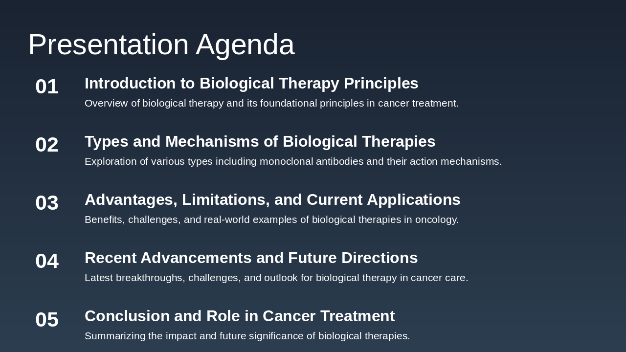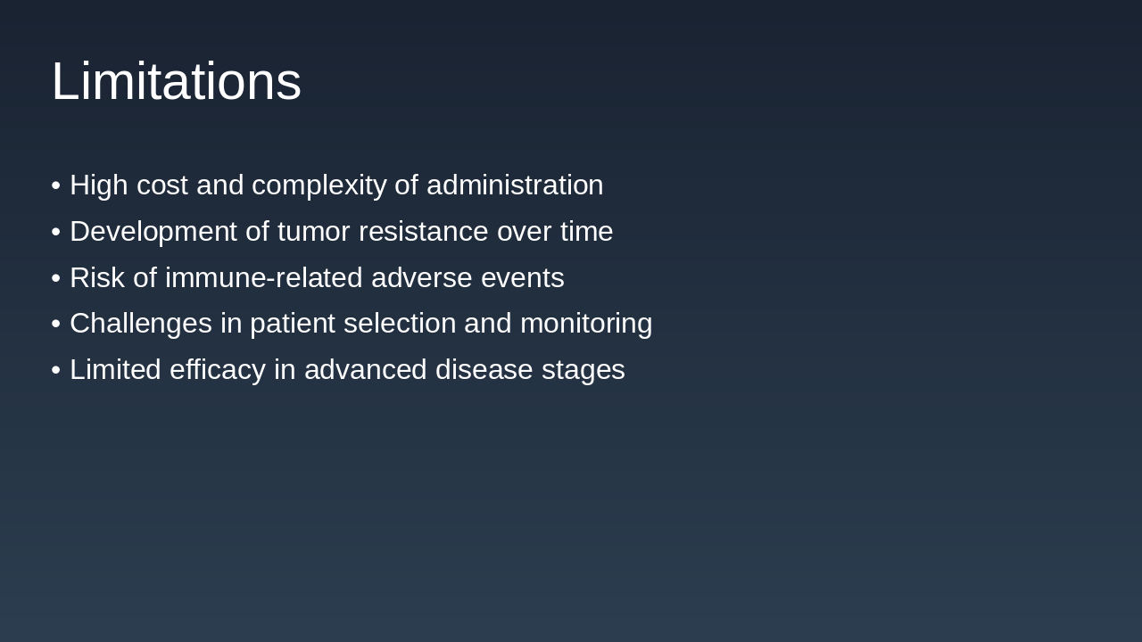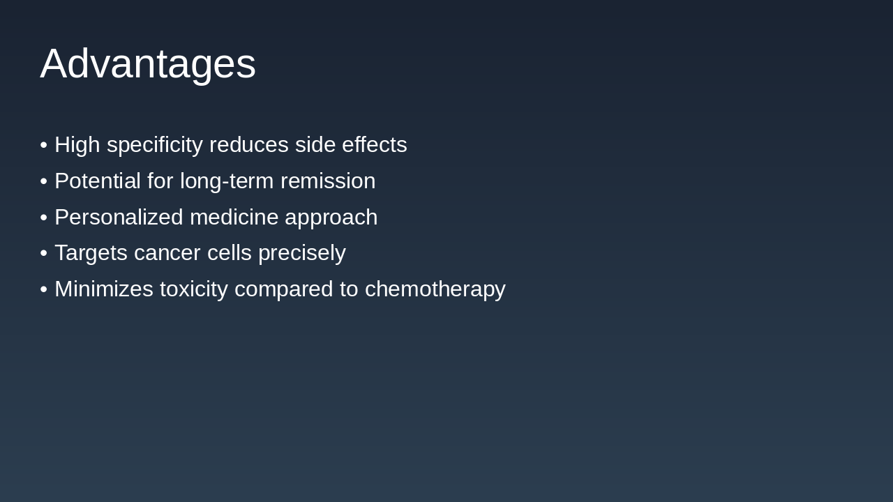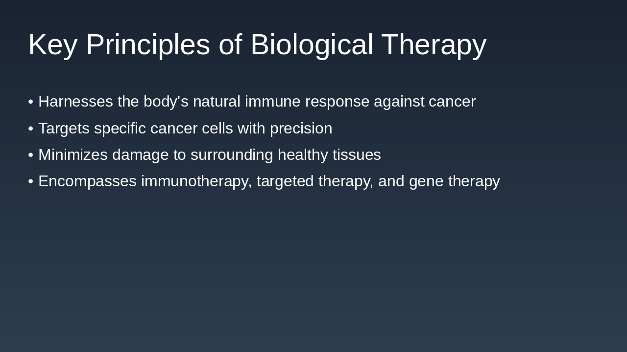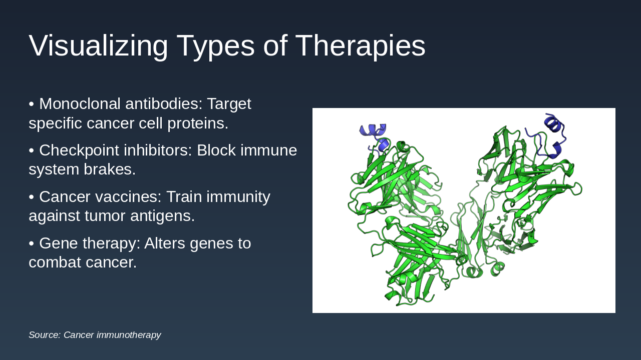 1997: Rituximab Approval for Cancer Treatment First monoclonal antibody approved for non-Hodgkin's lymphoma, revolutionizing targeted biological therapy. 2011: Ipilimumab as First Checkpoint Inhibitor Approved for melanoma, initiating the era of immune checkpoint blockade in cancer immunotherapy. 2017: FDA Approval of CAR-T Therapies Chimeric antigen receptor T-cell therapies approved for leukemia and lymphoma, advancing personalized medicine. 2023: Bispecific Antibodies in Clinical Trials Engaging immune cells against tumors, showing promise in ongoing trials for various cancers.