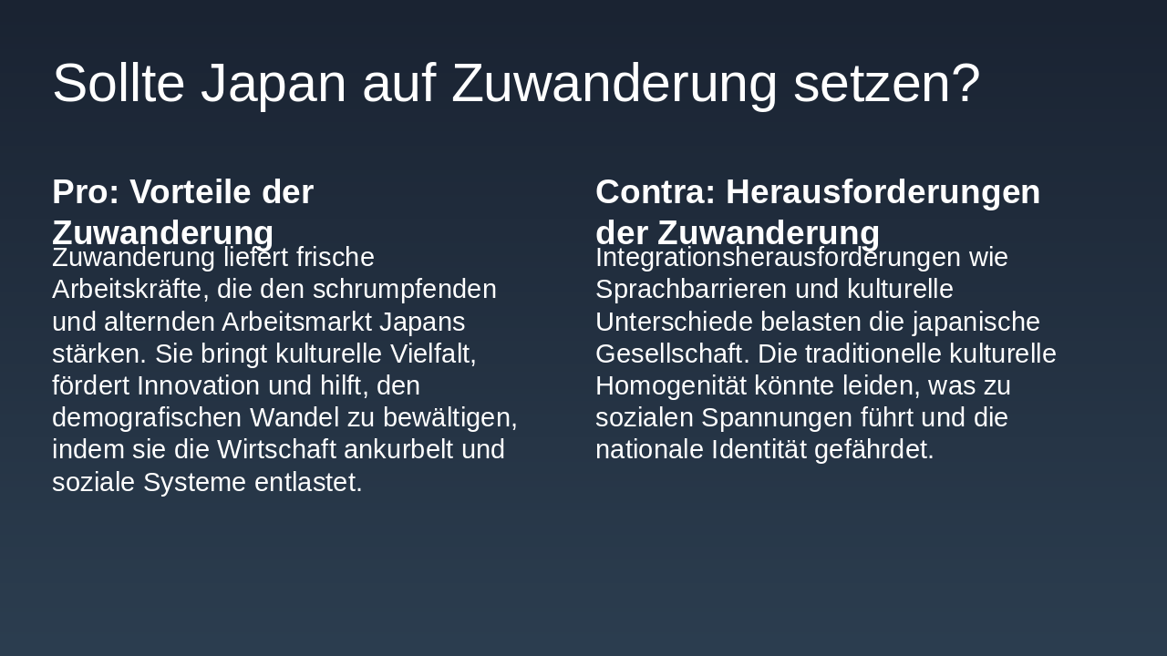Sollte Japan stärker auf Zuwanderung setzen gegen demografischen Wandel? Source: Demografische Entwicklung Japans
