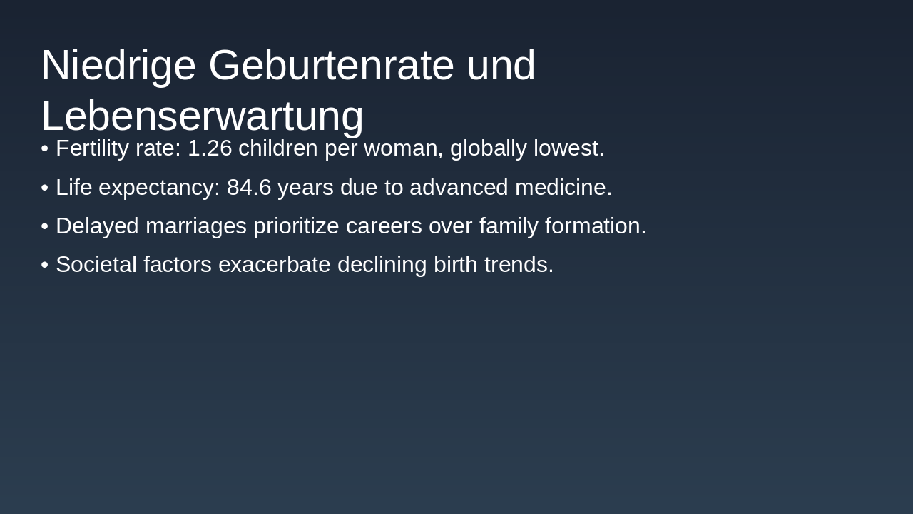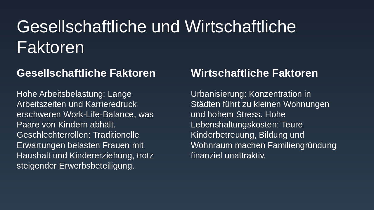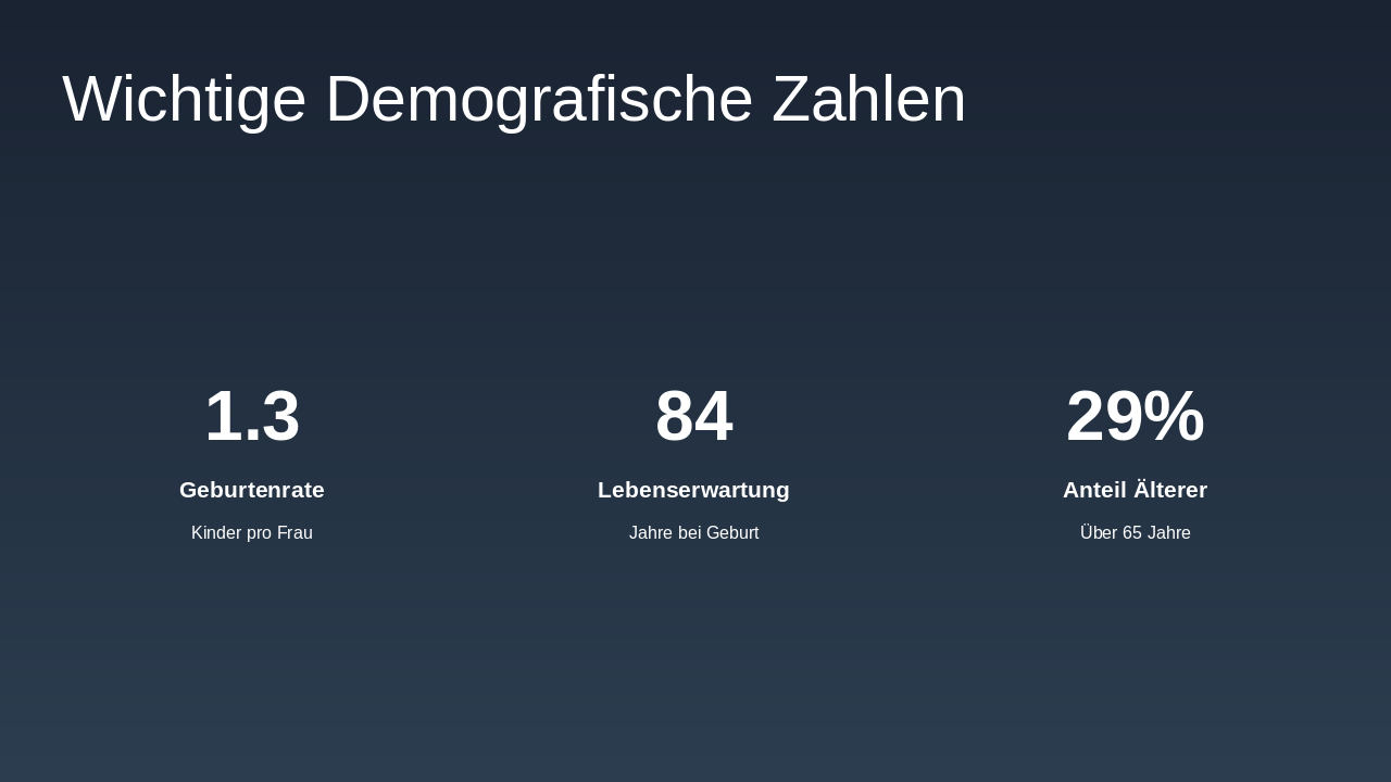 Ursachen: niedrige Geburtenrate, hohe Lebenserwartung, gesellschaftliche und wirtschaftliche Faktoren.