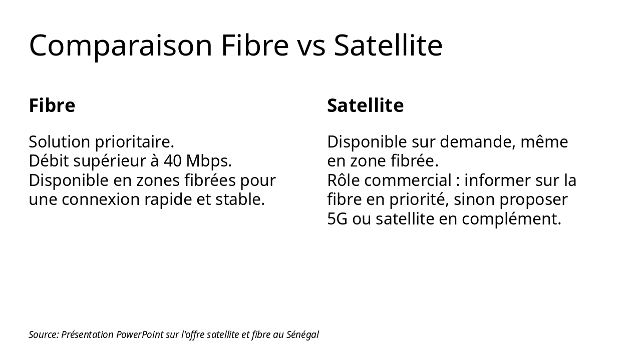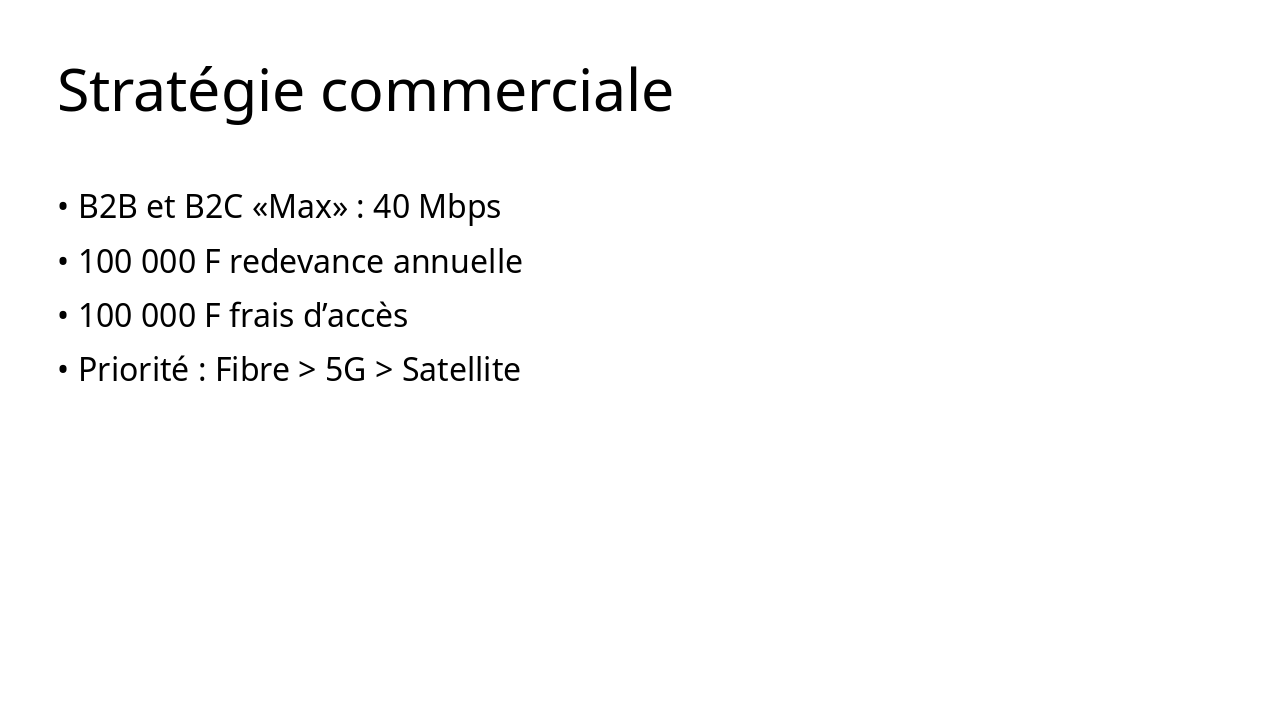 Offres B2B/B2C, hiérarchie fibre-5G-satellite et coûts.