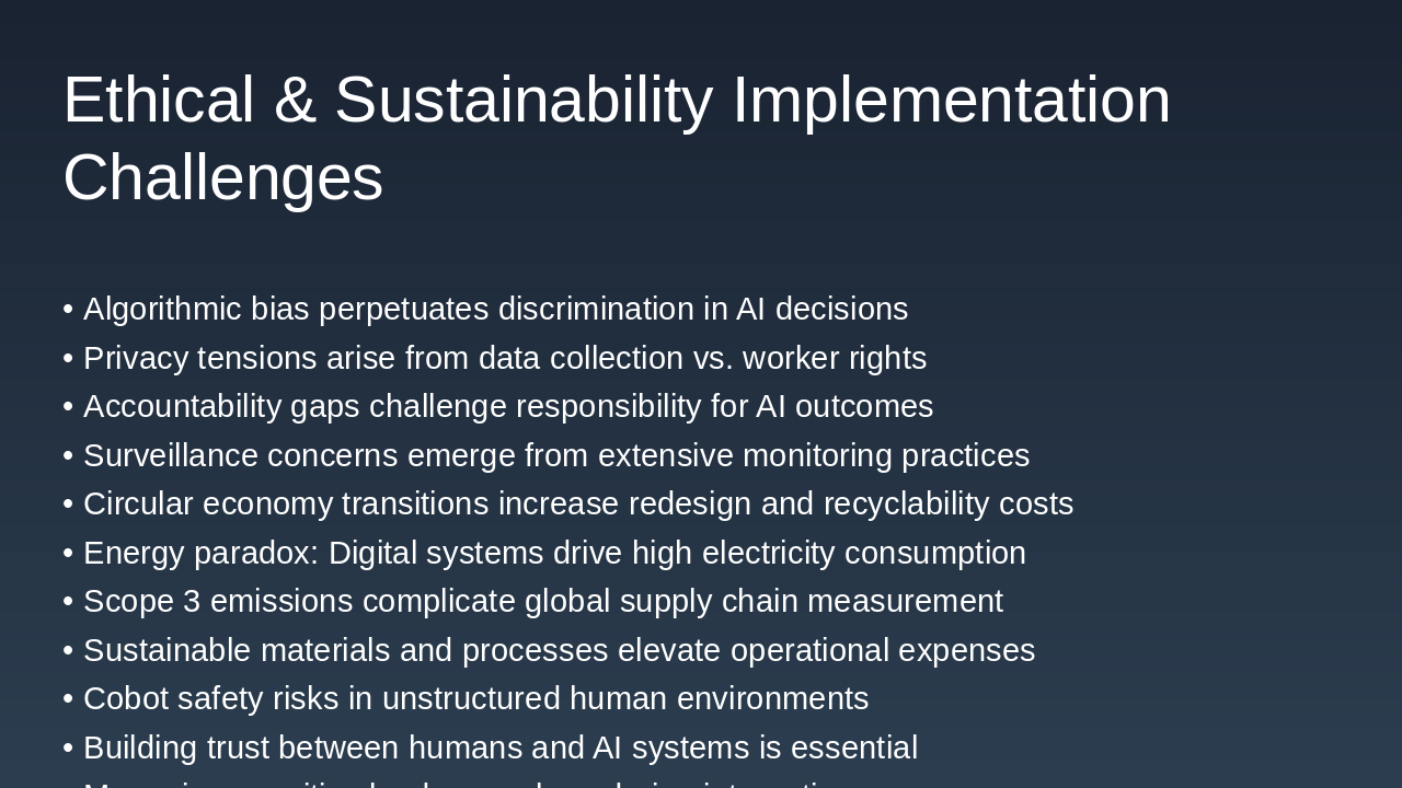 ## SLIDE 8: Industry 5.0 Challenges - Ethical & Sustainability Complexities