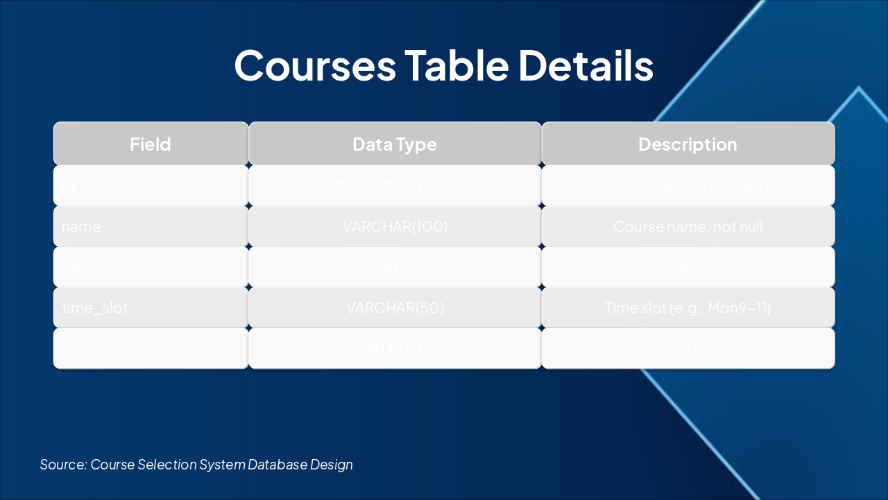 Slide 1 - Design and Implementation of Database-Based Course Selection System